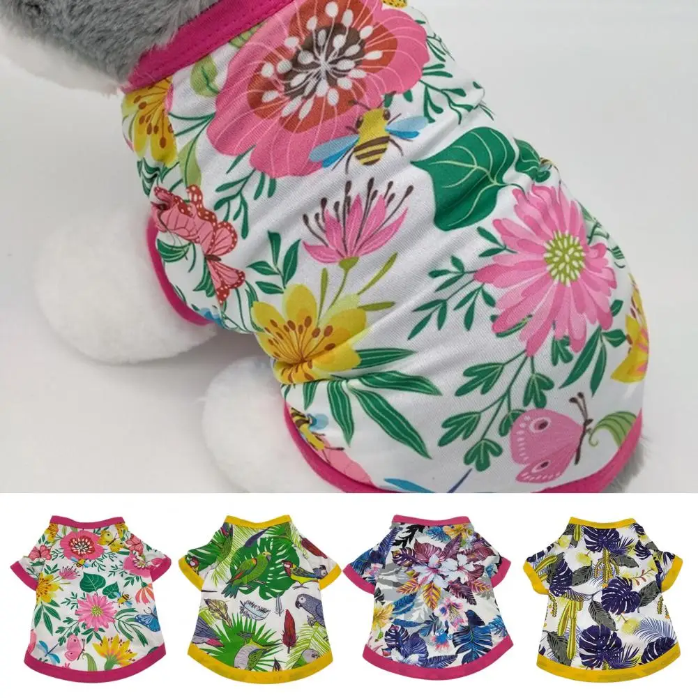 Camisa atractiva para mascotas, tela de mano de obra fina, ropa transpirable con estampado de plantas para mascotas para el verano