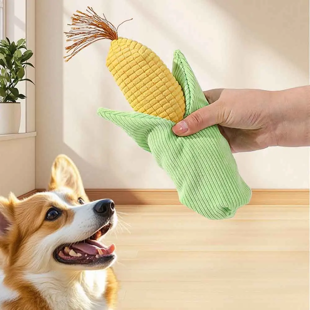 Dog Squeaky Plush Toy - Corn Shape with Squeaky Head, Self-Entertainment for Puppies, Teething Chew Toy to Relieve Boredom,