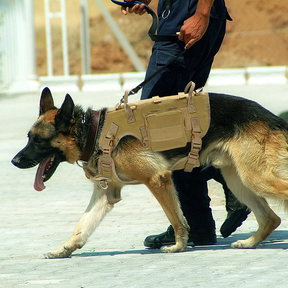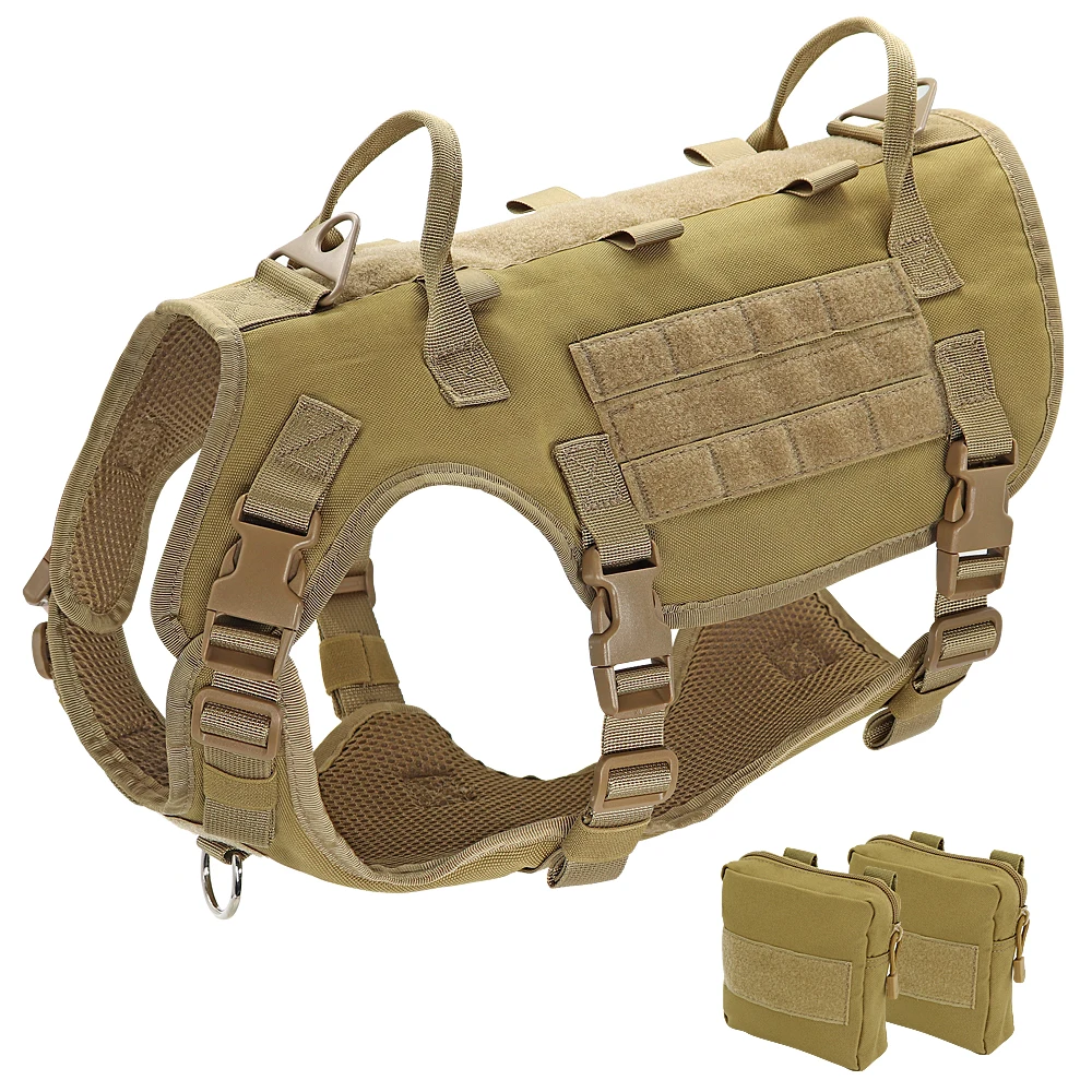 Arnés táctico para perros Molle chaleco ajustable militar arnés de entrenamiento para mascotas para perros medianos grandes con 2 bolsas desmontables al aire libre