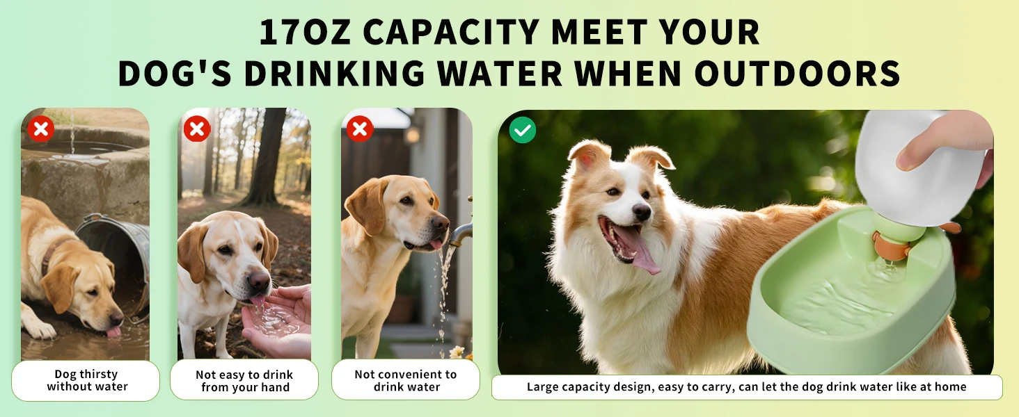 🌴Diseño creativo plegable: las 17 oz (500 ml) están diseñadas para adaptarse a todo tipo de perros en viajes largos, y la botella compacta cabe en una mochila o portavasos para el automóvil, lo que la hace ideal para viajes, picnics o entrenamientos.