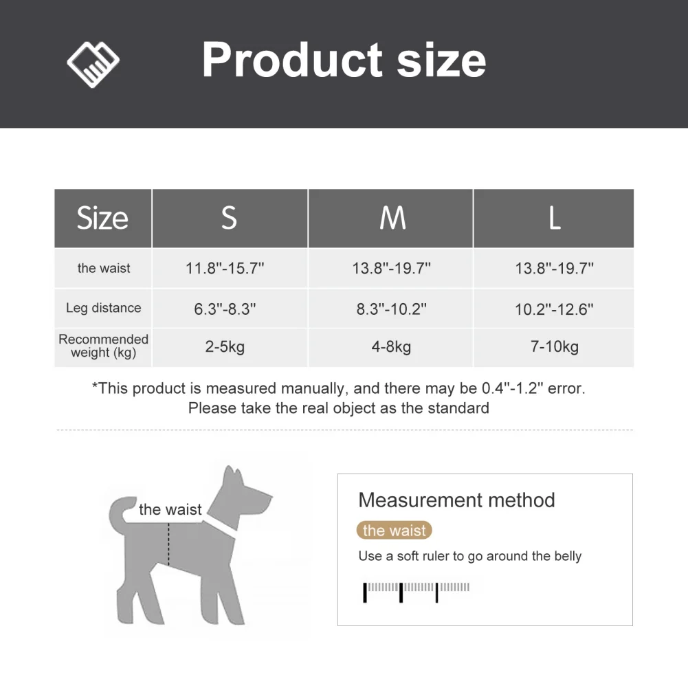 S: cintura 30-40cm, espacio entre piernas 16-21cm, peso recomendado 4-10kg