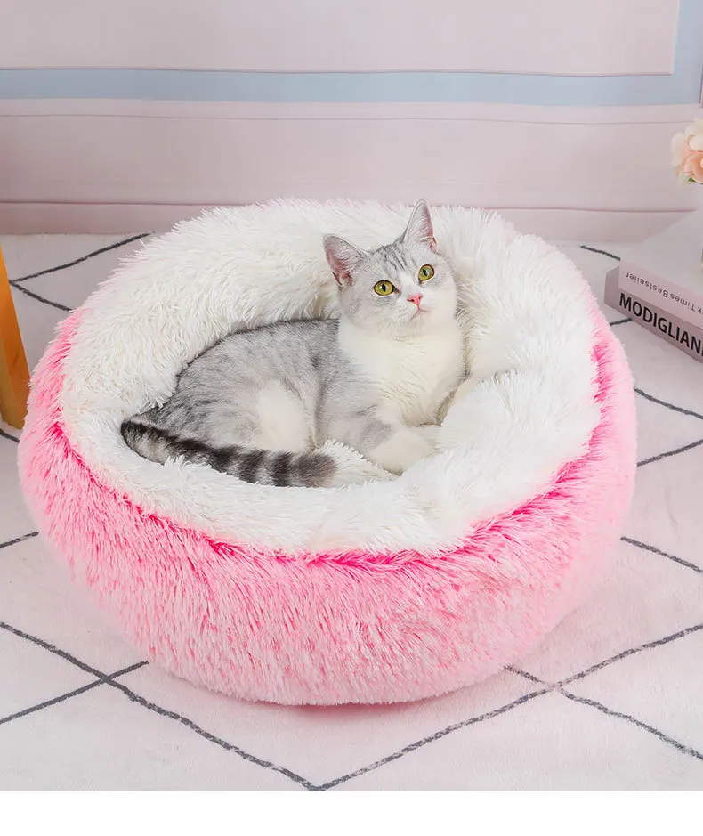 Donut-cama de felpa para perros medianos, accesorios redondos para mascotas, cesta pequeña, sofá, cestas, cojín grande para mascotas, alfombrilla para cachorros y gatos