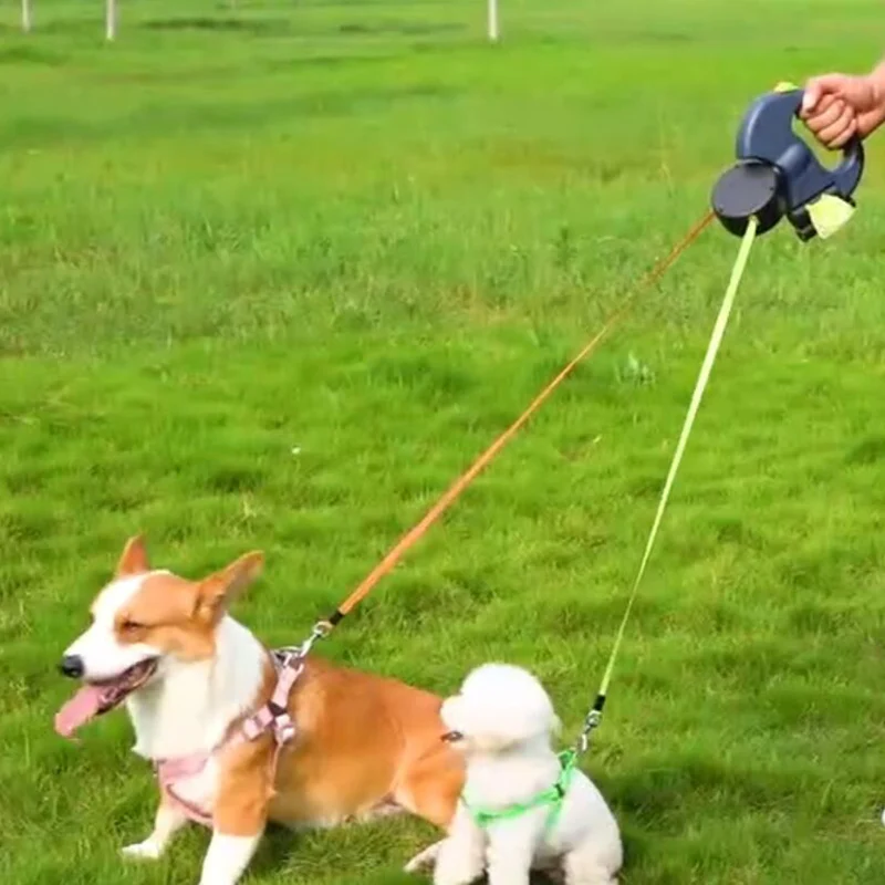 Double Automatic Puppy Dog Leash Retractable Pet Leashes for Small Medium Dogs French Bulldog Chihuahua Cat Rope mascotas Chain