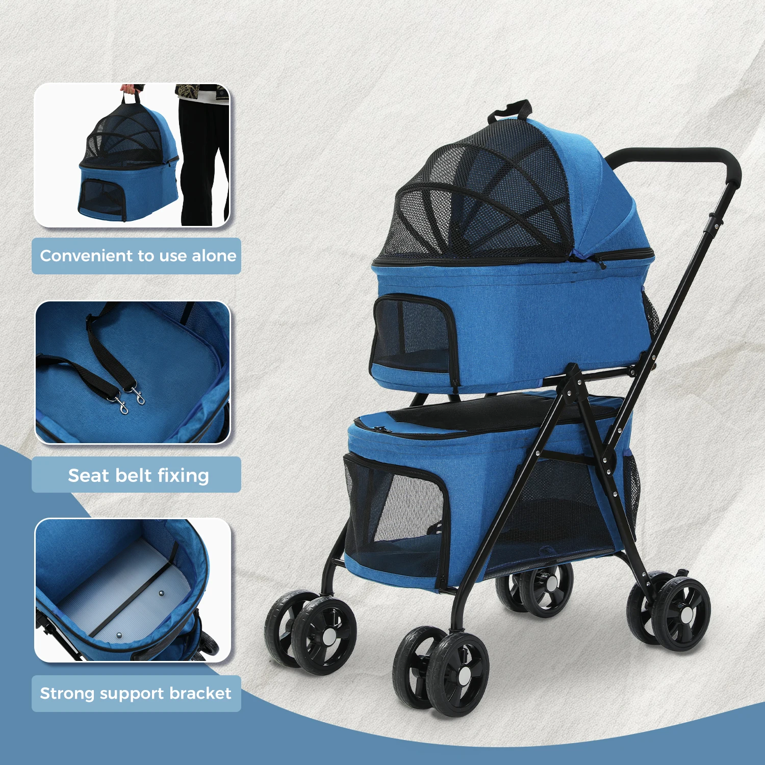 Cochecito doble para mascotas para perros o gatos pequeños, cochecito doble plegable ligero para perros con soporte desmontable para viajes y campamentos
