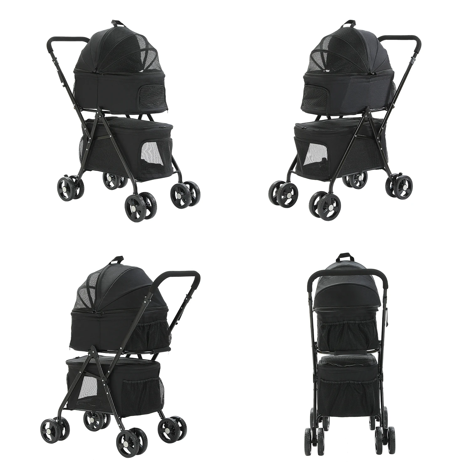 2 transportadores separados para mascotas de gran capacidad: la parte transportadora para mascotas se puede quitar.Ambos vienen con 2 correas para evitar que se salga, por lo que se puede utilizar para varias personas.El nivel inferior está equipado con una gran capacidad de transporte (capacidad de carga de 24,6 lbs (12 kg) y un bolsillo de almacenamiento en la parte trasera.Conveniente para sacar bolsas de etiquetas y paseos acuáticos sin agacharse.