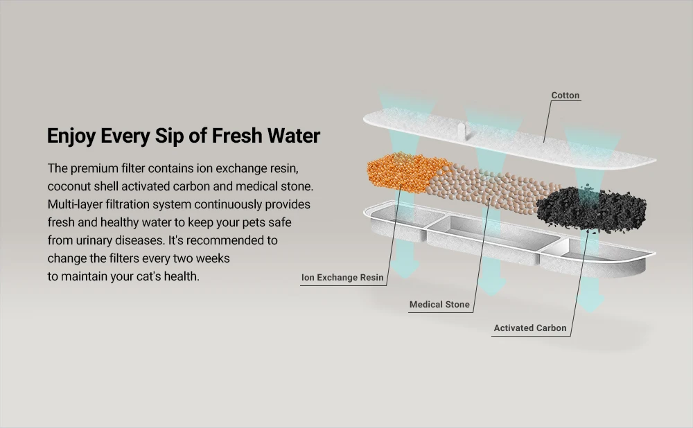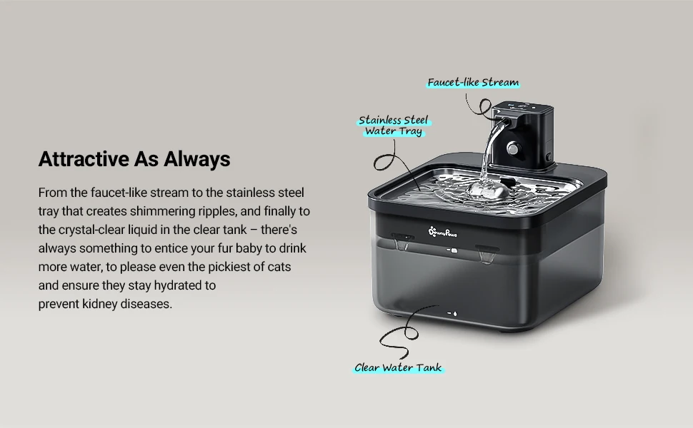 Algunos estudios han demostrado que los gatos prefieren el agua corriente.En cambio, elegimos utilizar la función del sensor para que la fuente comience a funcionar automáticamente cuando se acerque.Si bien ahorra energía, es más probable que atraiga su atención para que puedan hidratarse.
