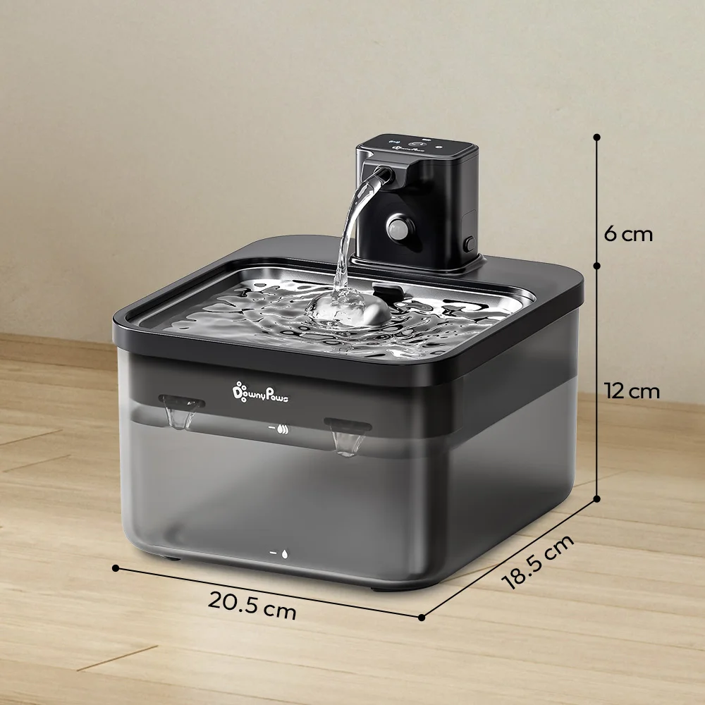 Hacemos que la fuente de agua tenga una forma parcial cuadrada.La altura también está diseñada para satisfacer la mayoría de los gatos que pueden beber cómodamente mientras están sentados o de pie.