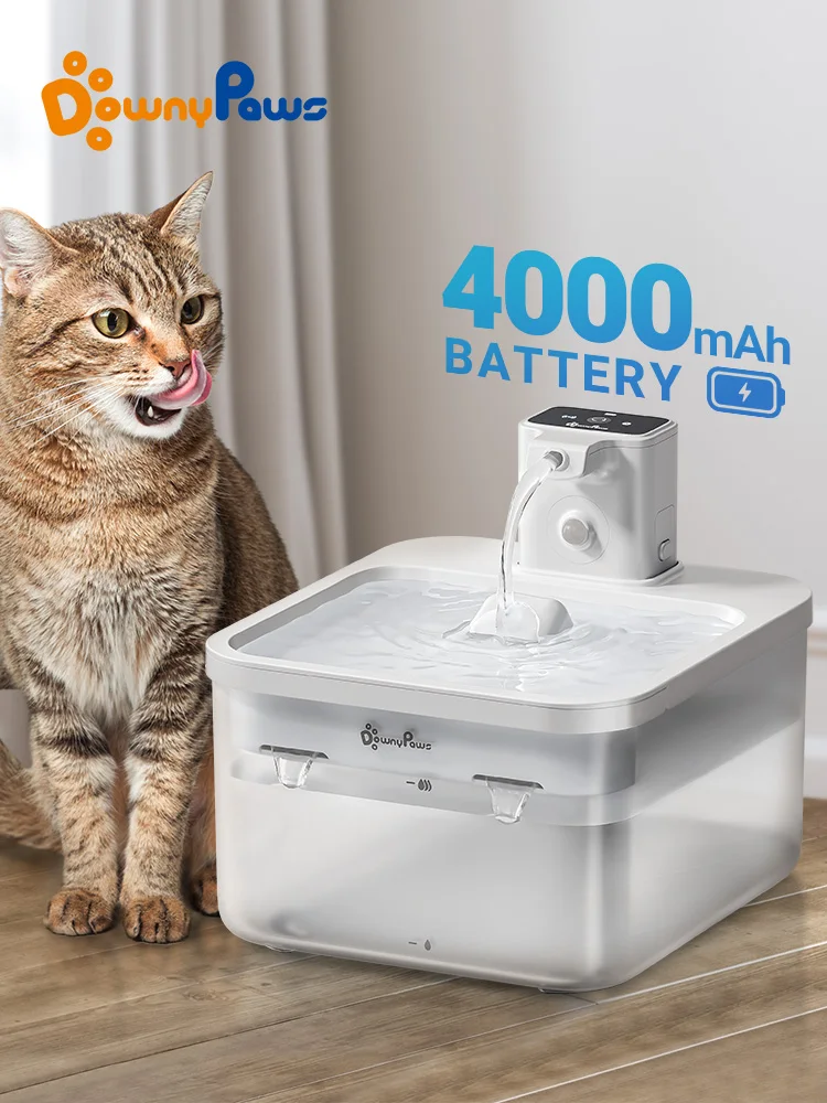 Los estudios demuestran que los gatos generalmente prefieren un ambiente de comedor tranquilo donde se sientan más cómodos y seguros. Así que aquí viene nuestra fuente inalámbrica DownyPaws, sin cables molestos y alimentada por batería recargable, lo que le brinda más libertad para configurarla donde prefieran sus mascotas, además, no hay cables con los que tropezar o ser masticado por esos pequeños traviesos.