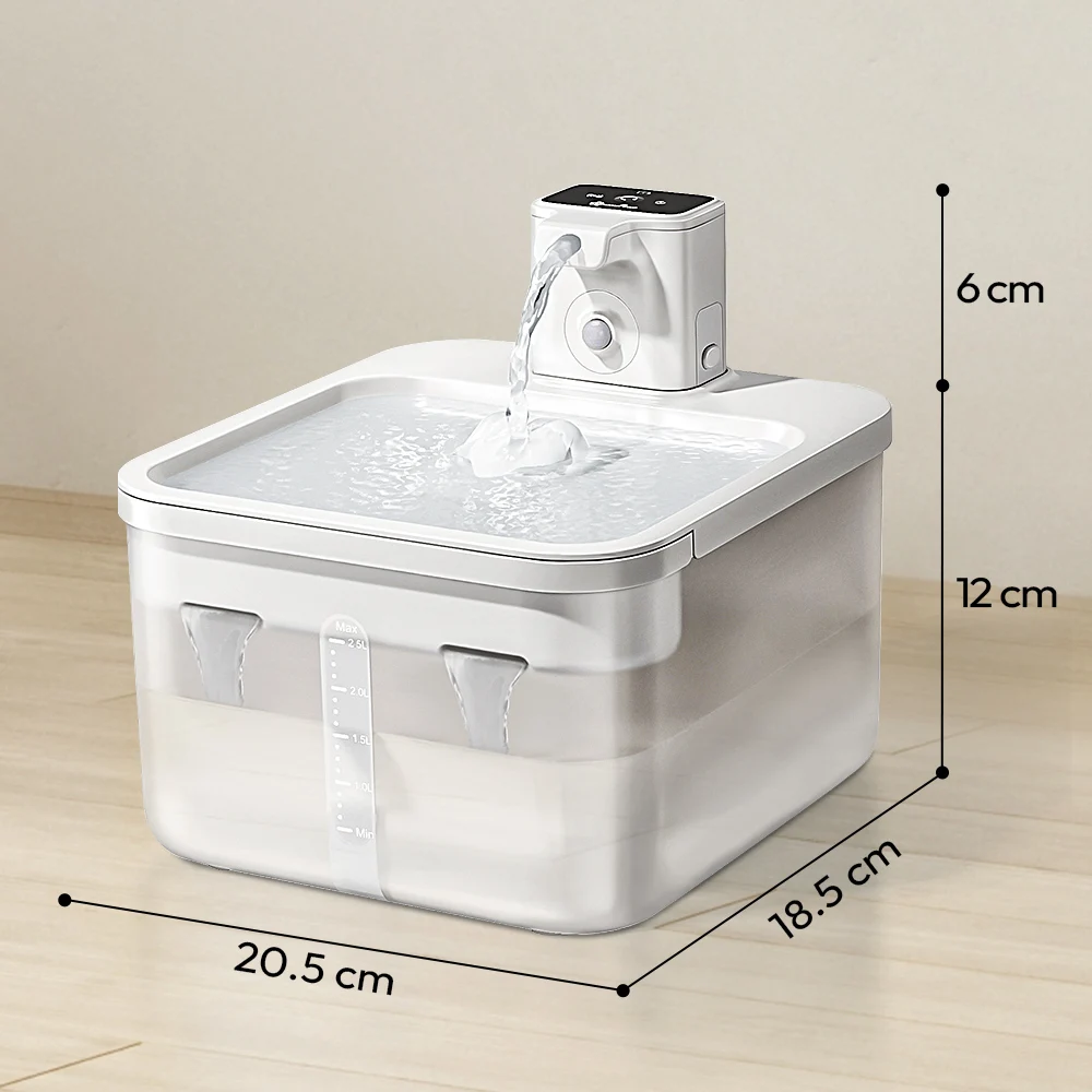 Hacemos que la fuente de agua tenga una forma parcialmente cuadrada. La altura también está diseñada para satisfacer la mayoría de los gatos que pueden beber cómodamente mientras están sentados o de pie.