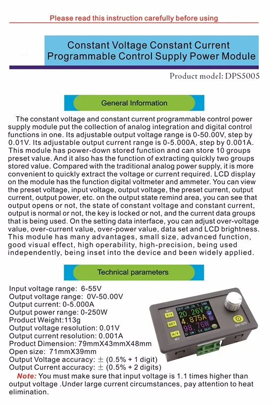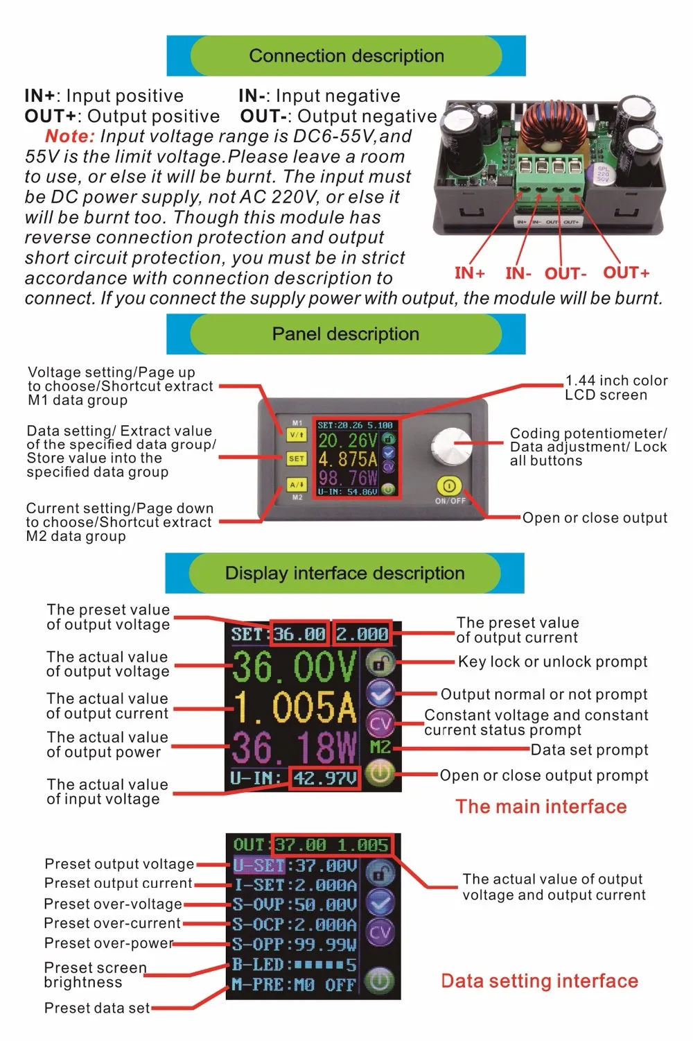 Rango de voltaje de entrada: 6,00-55,00 V Rango de voltaje de salida: 0 V-50,00 V
