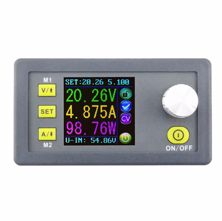 El módulo de fuente de alimentación de control programable de voltaje constante y corriente constante coloca la colección de funciones de integración analógica y control digital en uno.Su rango de voltaje de salida ajustable es de 0 a 50,00 V, paso de 0,01 V.Su rango de corriente de salida ajustable es de 0-5.000 A, paso de 0,001 A.Este módulo tiene función almacenada de apagado y puede almacenar 10 grupos de valores preestablecidos.Y también tiene la función de extraer rápidamente dos grupos de valor almacenado.En comparación con la fuente de alimentación analógica tradicional, es más conveniente extraer rápidamente el voltaje o la corriente requerida.La pantalla LCD del módulo tiene la función de voltímetro y amperímetro digital.Puede ver el voltaje preestablecido, el voltaje de entrada, el voltaje de salida, la corriente preestablecida, la corriente de salida, la potencia de salida, etc.En el área de recordatorio del estado de salida, puede ver que la salida se abre o no, el estado de voltaje constante y corriente constante, la salida es normal o no, la llave está bloqueada o no y los grupos de datos actuales que se están utilizando.En la interfaz de configuración de datos, puede ajustar el valor de sobretensión, el valor de sobrecorriente, el valor de sobretensión, el conjunto de datos y el brillo de la pantalla LCD.Este módulo tiene muchas ventajas, tamaño pequeño, función avanzada, buen efecto visual, alta operatividad, alta precisión, uso independiente, insertado en el dispositivo y se aplicó ampliamente.