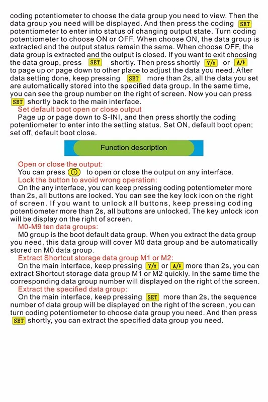 Resolución de corriente de salida: 0,001 A Precisión del voltaje de salida: ± (0,5% + 1 dígito)