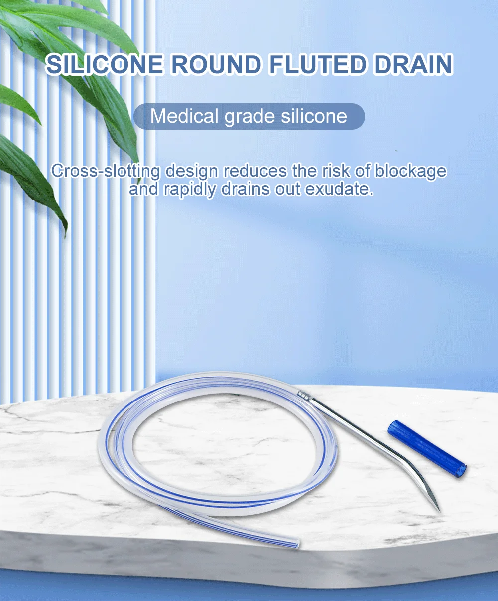 Silicone Round Fluted Drain 10Fr-24Fr 120cm Clog Proof With Trocar Open Slot Drainage Tube Eo Sterilization Veterinary Equipment