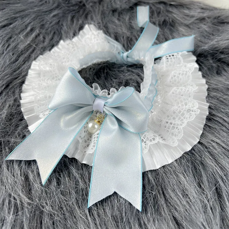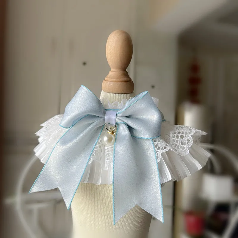 Dulce gato perro Baberos Collar niñas cuello decoración ajustable encaje blanco rosa/azul Bowknot pañuelo cadena Correa bufanda collar