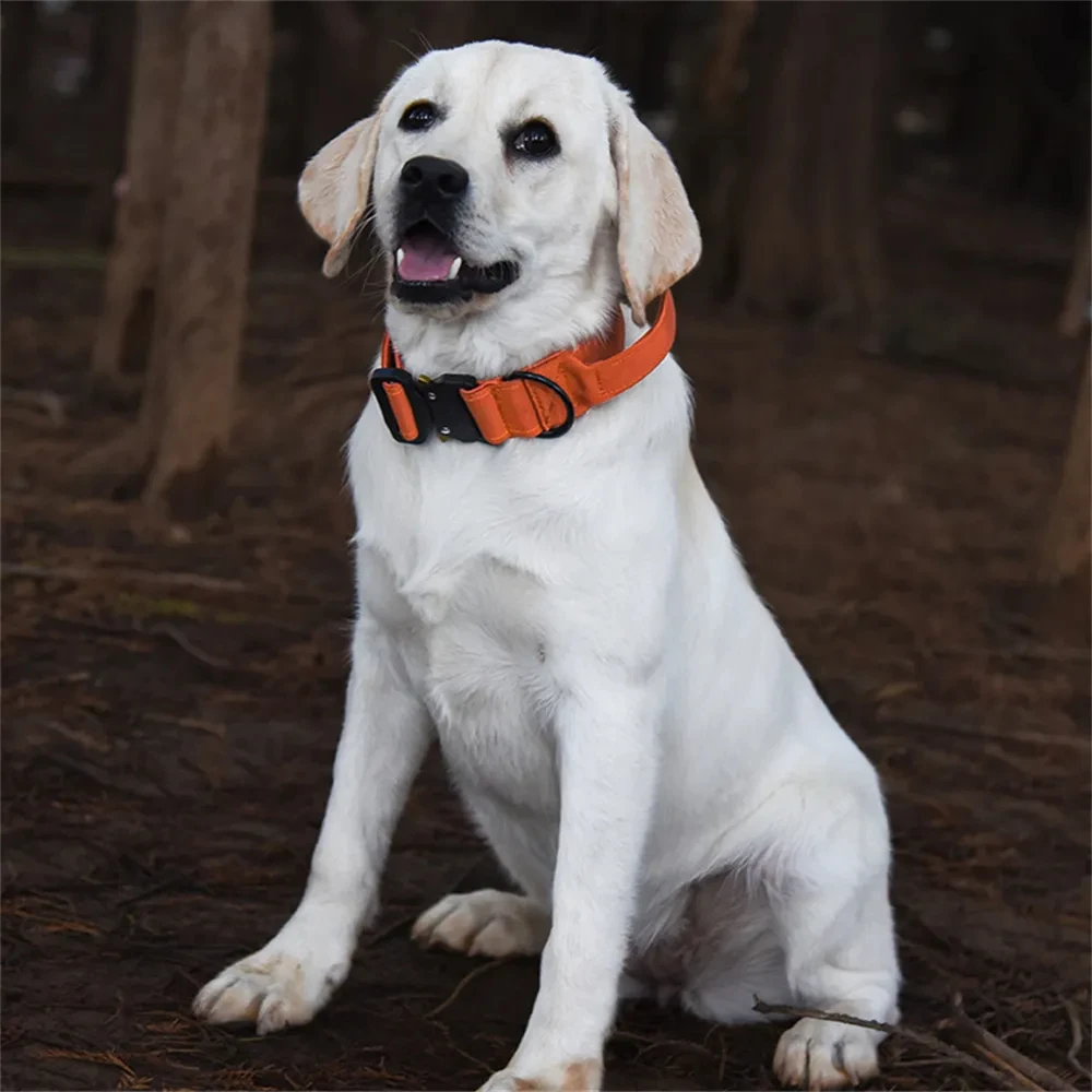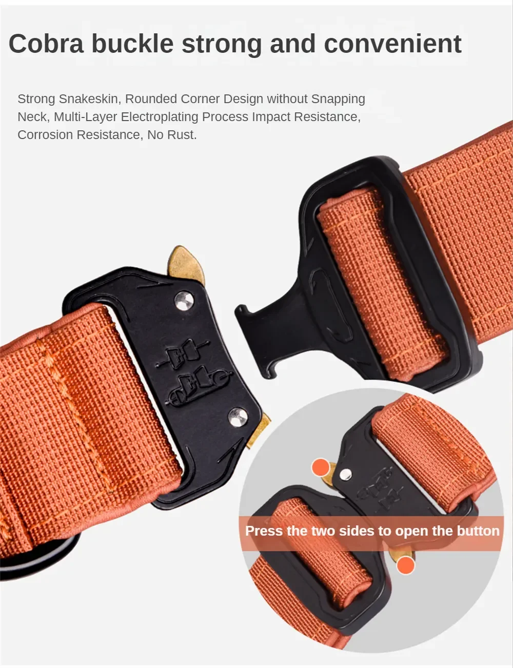 2.Collar para perros de alta resistencia.El collar de metal para perros cuenta con una hebilla y un control deslizante de metal de liberación rápida para un fácil ajuste y un ajuste cómodo.La hebilla metálica de liberación rápida tiene un mecanismo de bloqueo suave.Cuenta con un gran anillo en D para una fijación rápida y sencilla de la correa.