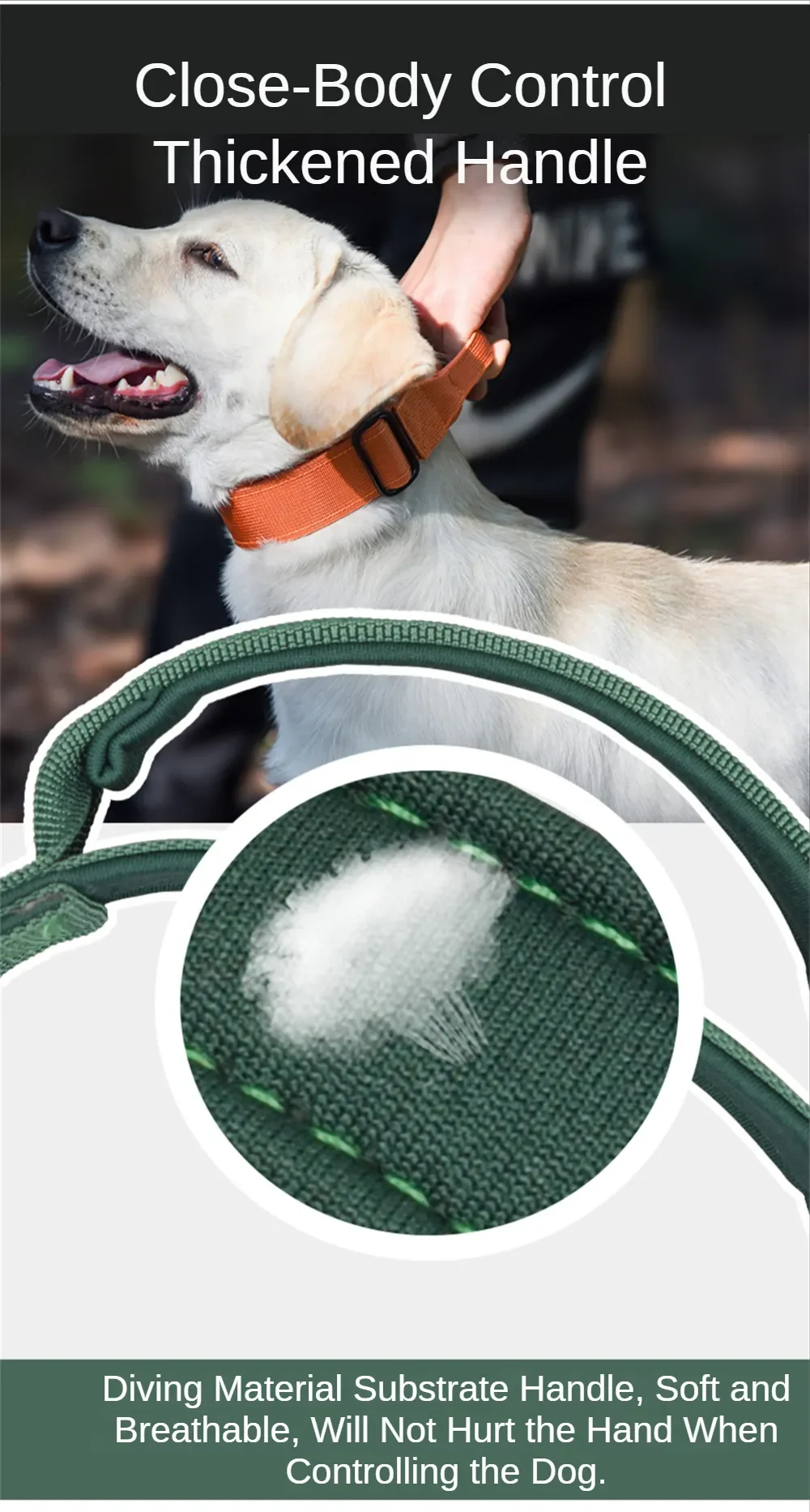 3.Collar para perro con asa.Este collar de entrenamiento para perros tiene un mango de control acolchado para un agarre muy cómodo, lo que facilita el control de su perro táctico en situaciones difíciles.Cuando lo usas para paseos informales, hay un anillo en D adicional para conectar tu clicker de adiestramiento para perros o cápsula de bolsa de basura favorita, una excelente relación calidad-precio.