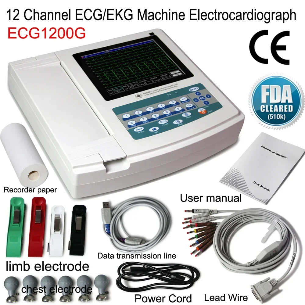 ECG1200G es un electrocardiógrafo que puede recopilar señales de ECG de 12 derivaciones simultáneamente e imprimir formas de onda de ECG con un sistema de impresión térmica.Cuenta con grabación y visualización de la forma de onda de ECG en modo AUTO/Manual, medición y diagnóstico automático de los parámetros de forma de onda de ECG, solicitan "Derivación apagada" y "Falta de papel", interfaz multilingüe, CA/CC, selección de derivación de ritmo, impresión el gráfico de tendencias y el histograma del intervalo P-R, gestión de bases de datos de casos.