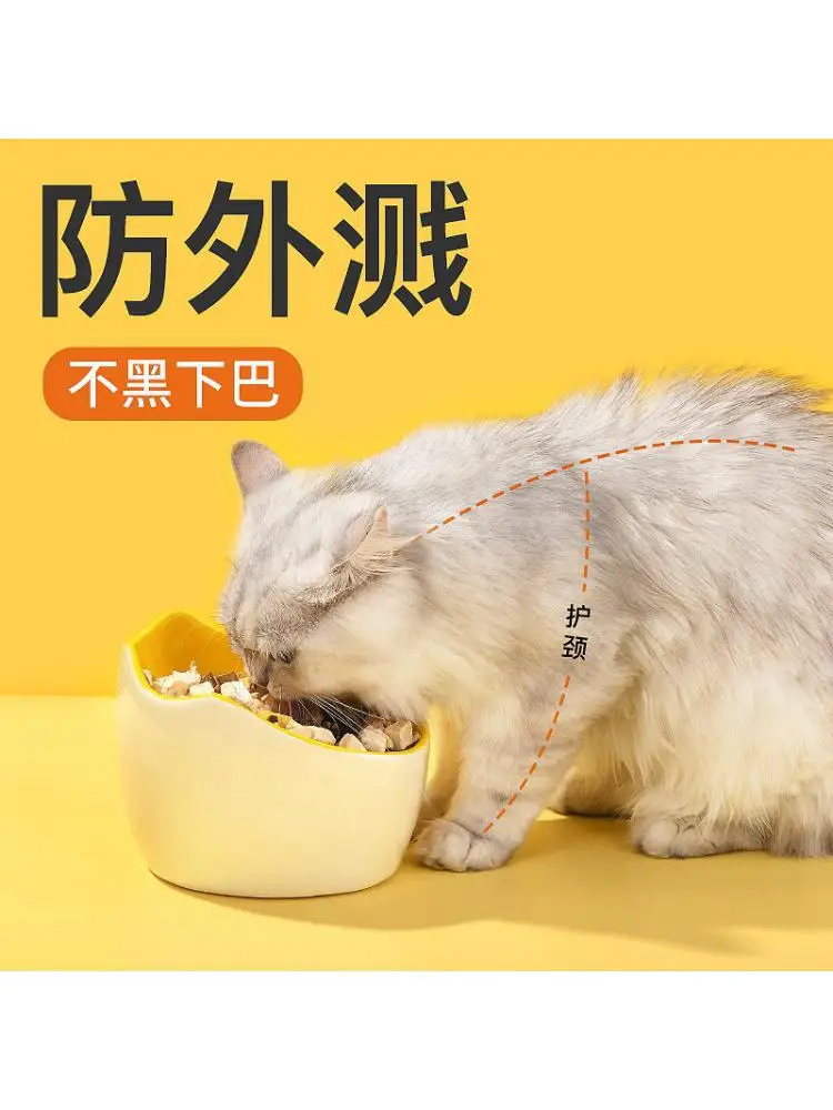 El cuenco de cerámica para comida para gatos protege las vértebras cervicales de los molestos 400ml de gran capacidad y fácil de limpiar