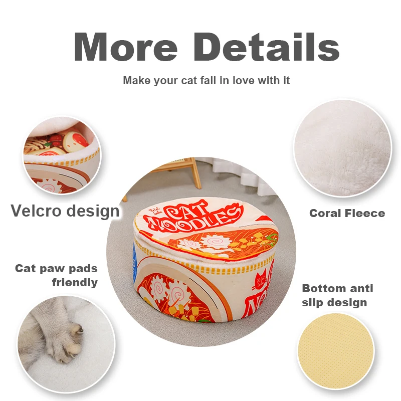 Super comfortable and soft! Comes with fluffy wool "ramen cover" and plush ramen soup mat! Secure with Velcro.