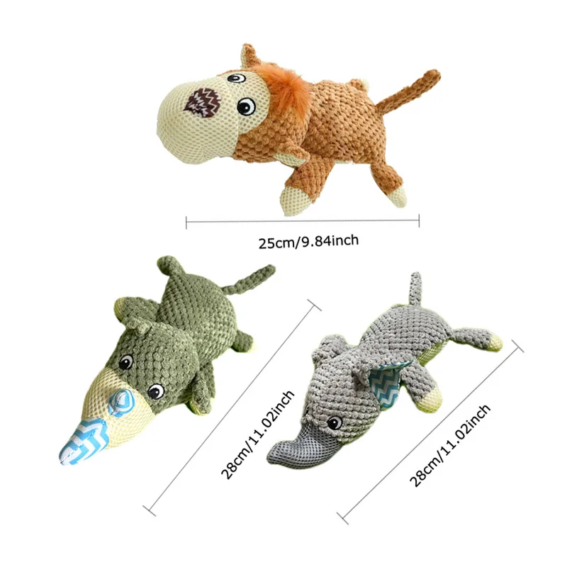Elefante de dibujos animados, lobo, León, perro en forma de peluche, juguetes para masticar para mascotas pequeñas y grandes, accesorios interactivos chirriantes para rechinar los dientes