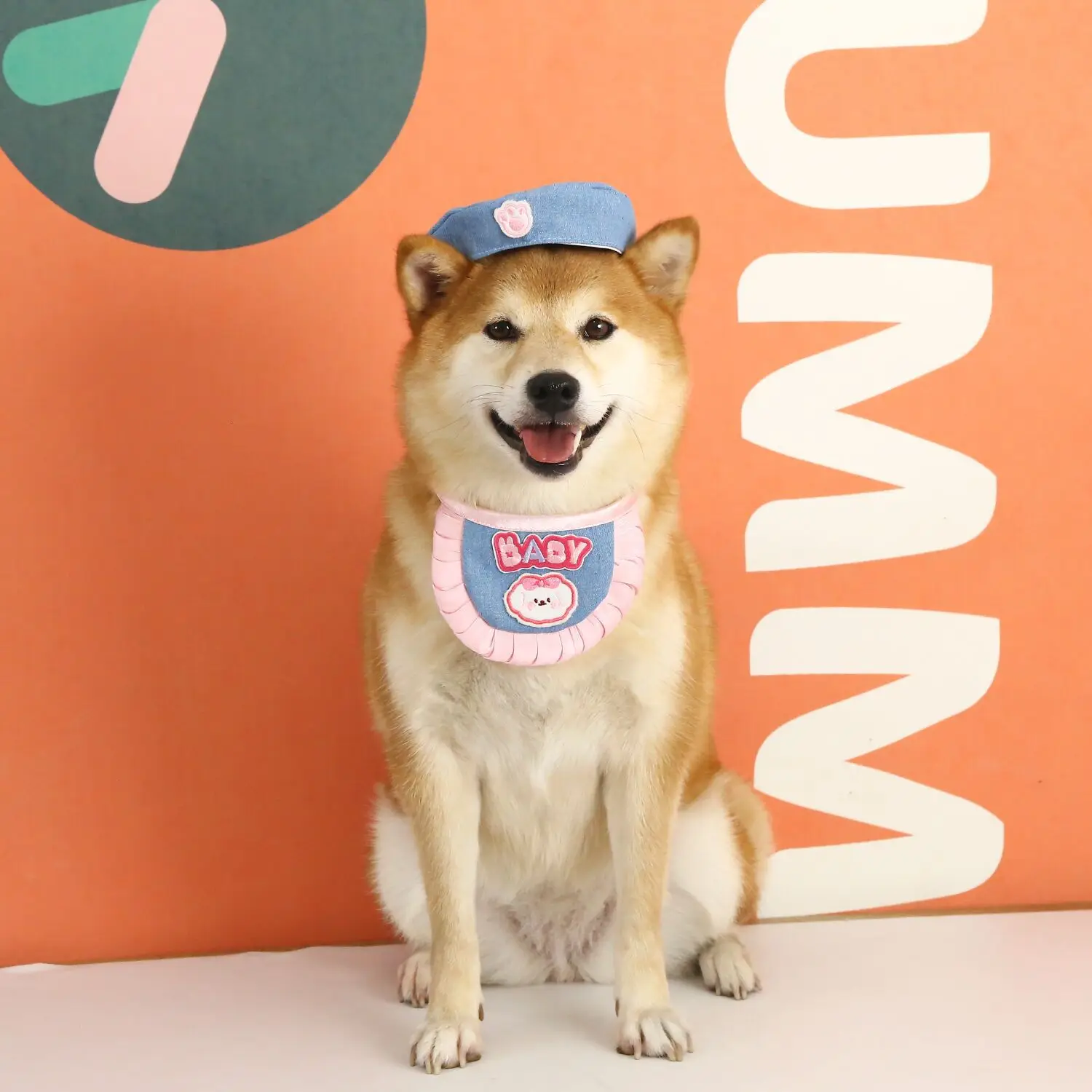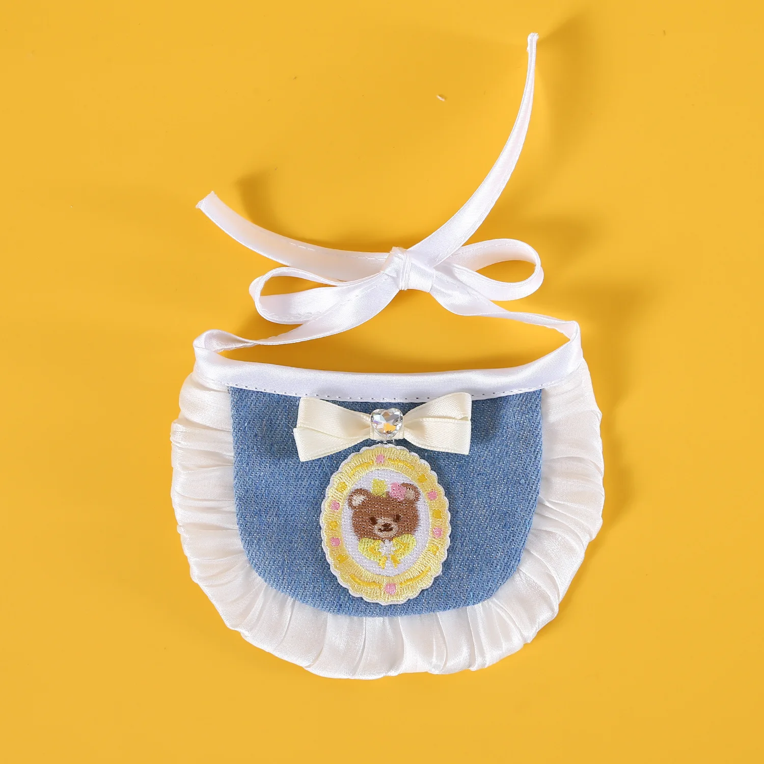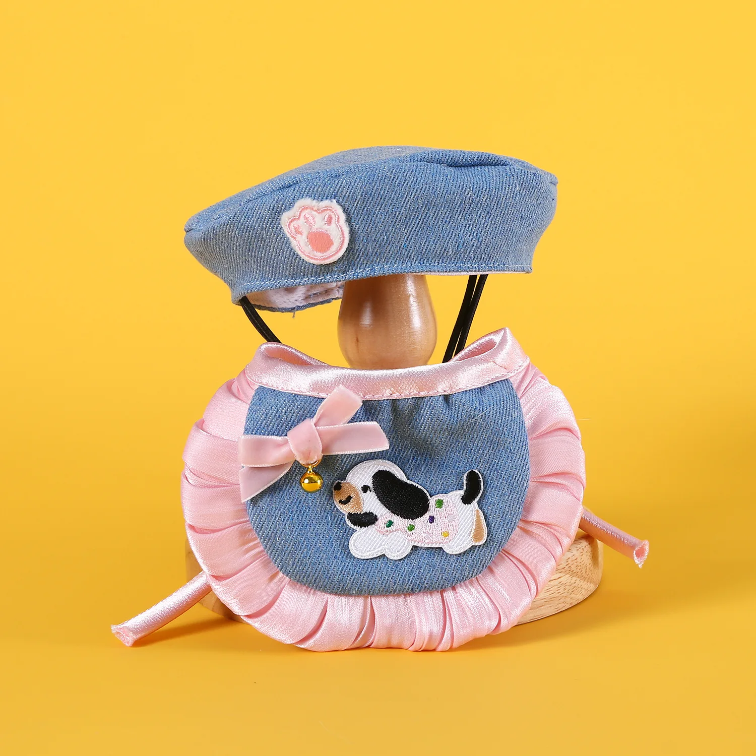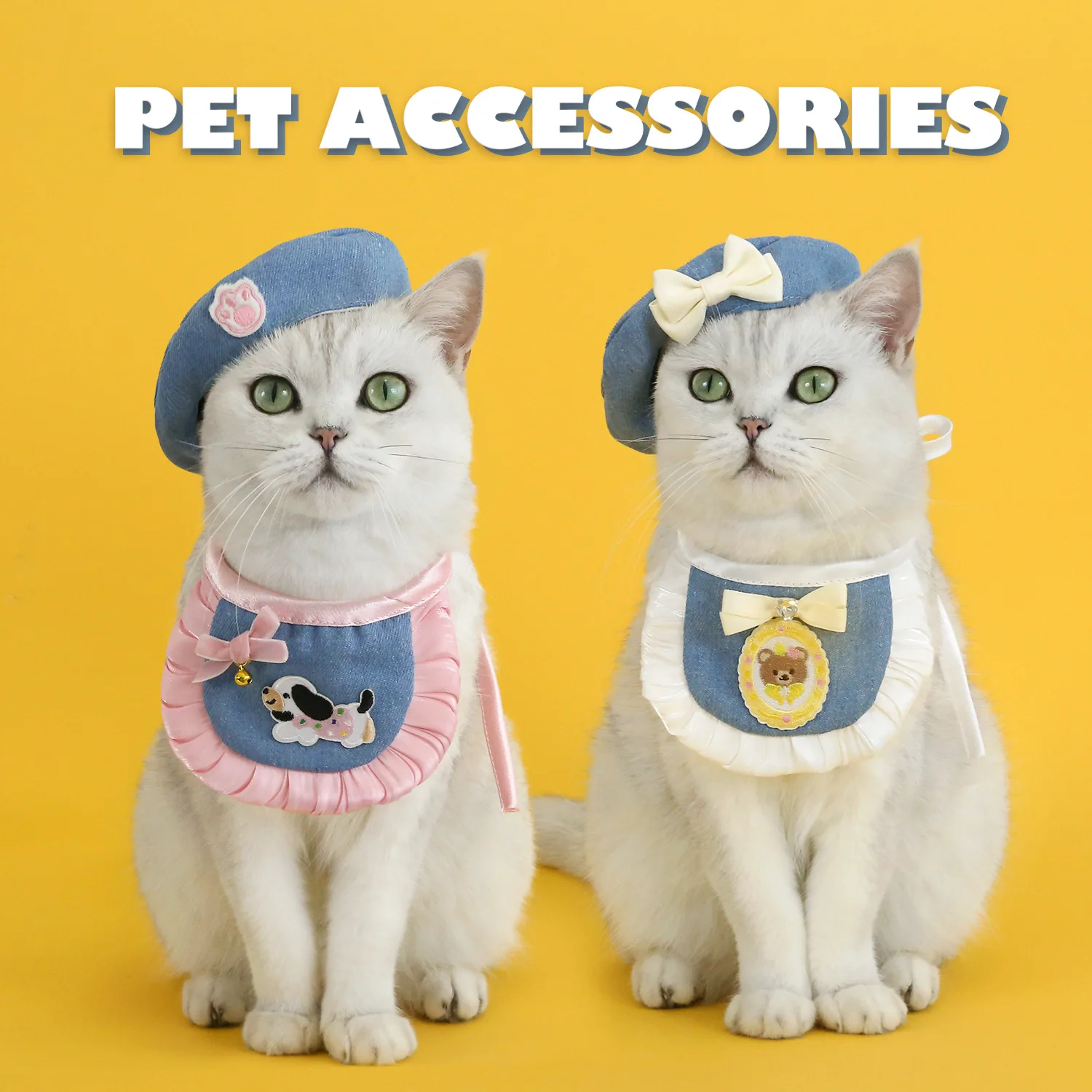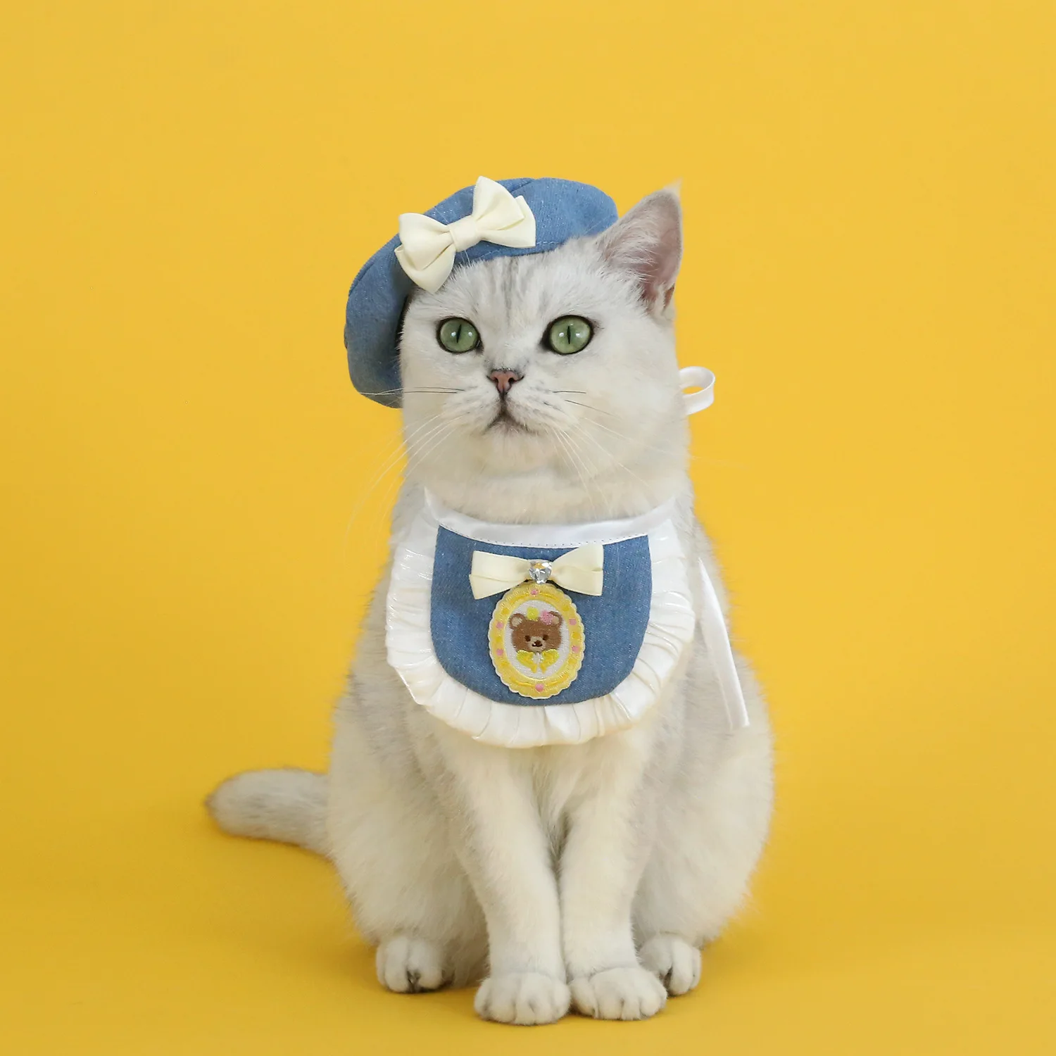 Elegant Pet Princess Look Floral Lace Bowknots Trendy Denim Beret. Perfect Head and Neck Accessories for Ragdoll Cats Teddy Dogs