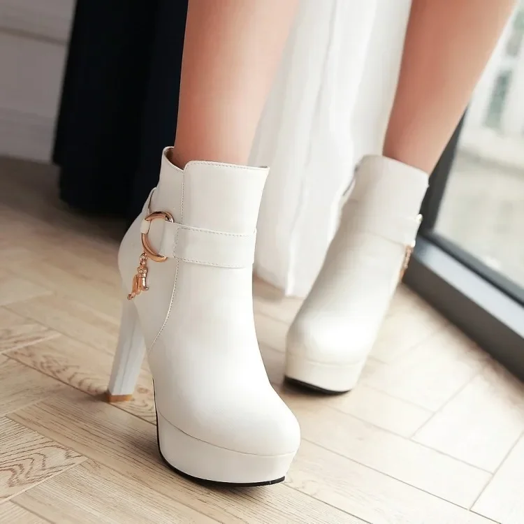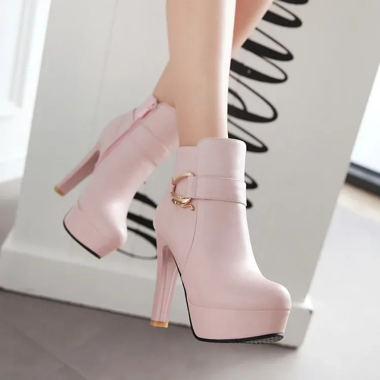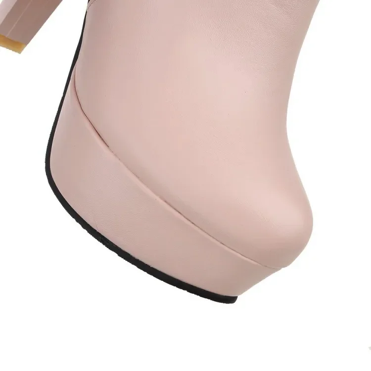 Elegant Short Boots Women Shoes Autumn Winter Women's Ankle Boot Platform Sweet Black White Pink Heeled Party Shoes Ladies