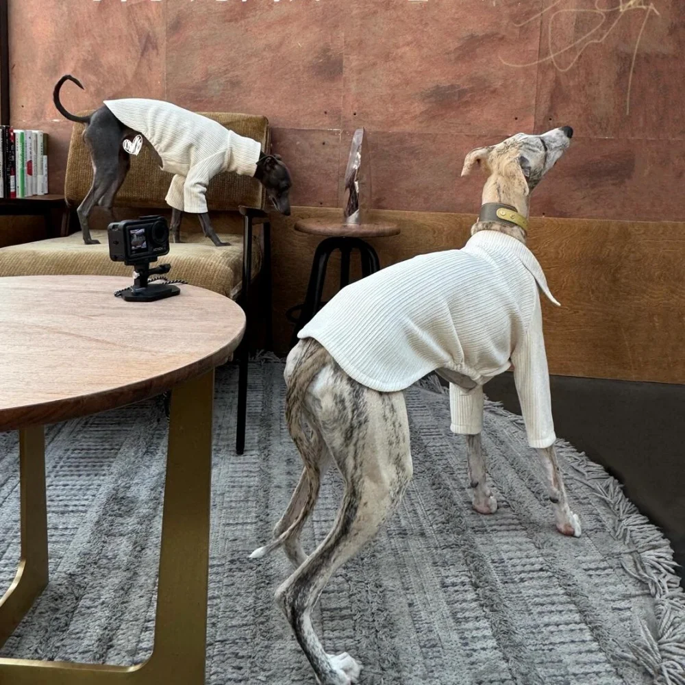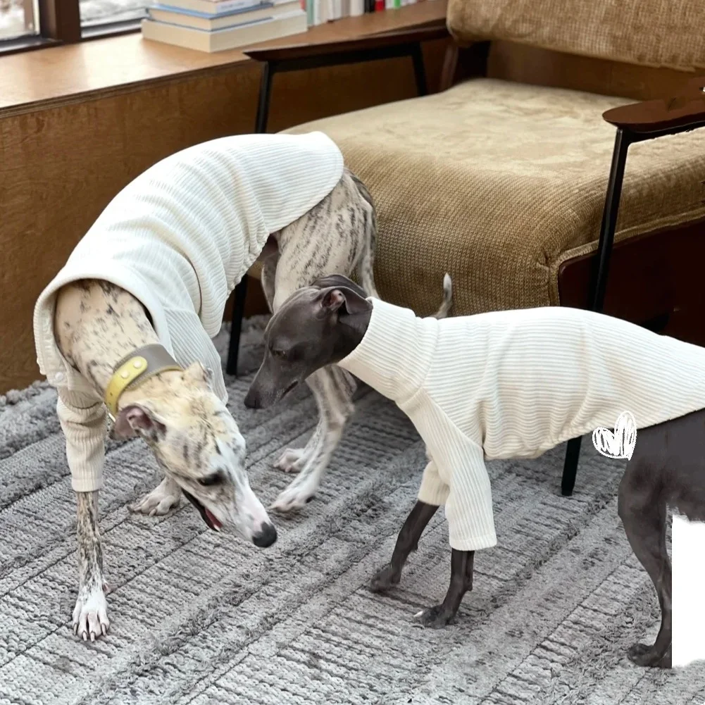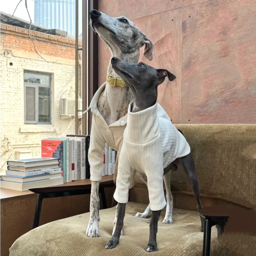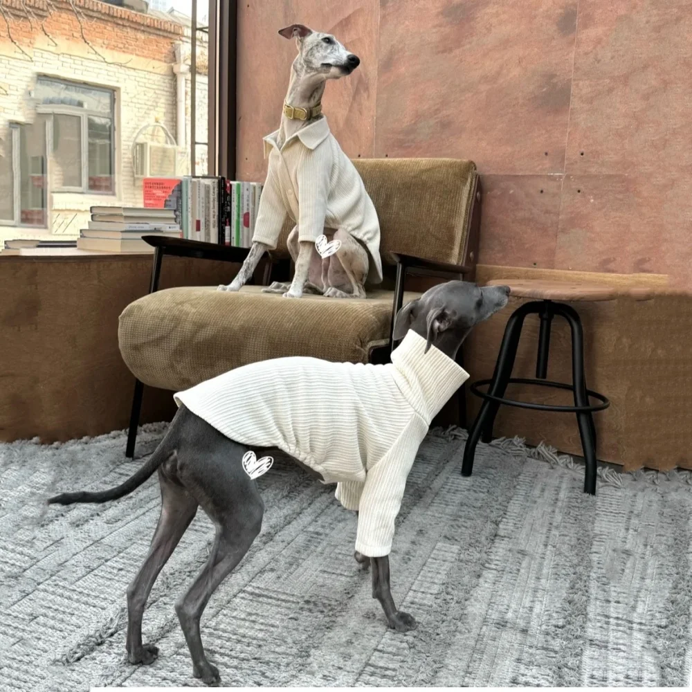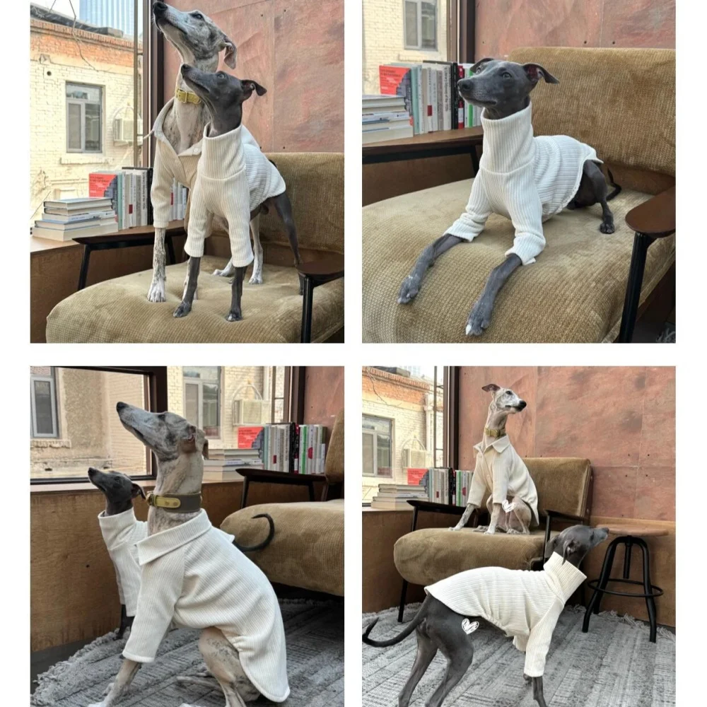 Elegante abrigo romántico de pana blanca con solapa para WHIPPET Camiseta suave de cuello alto de primavera para perros GreyHound italianos Traje en otoño