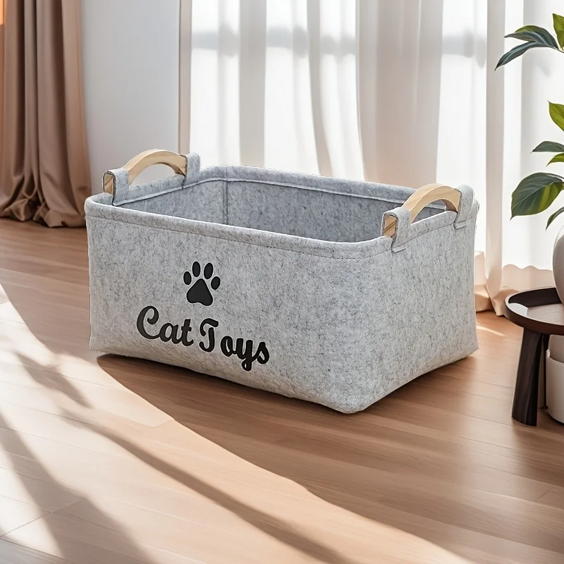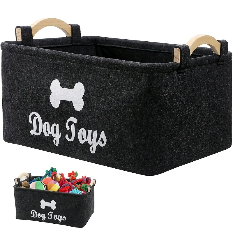Elegante cesta de almacenamiento de juguetes de fieltro para mascotas, organizador duradero para juguetes para gatos y perros, ropa sucia y suministros de limpieza, estampado de letras
