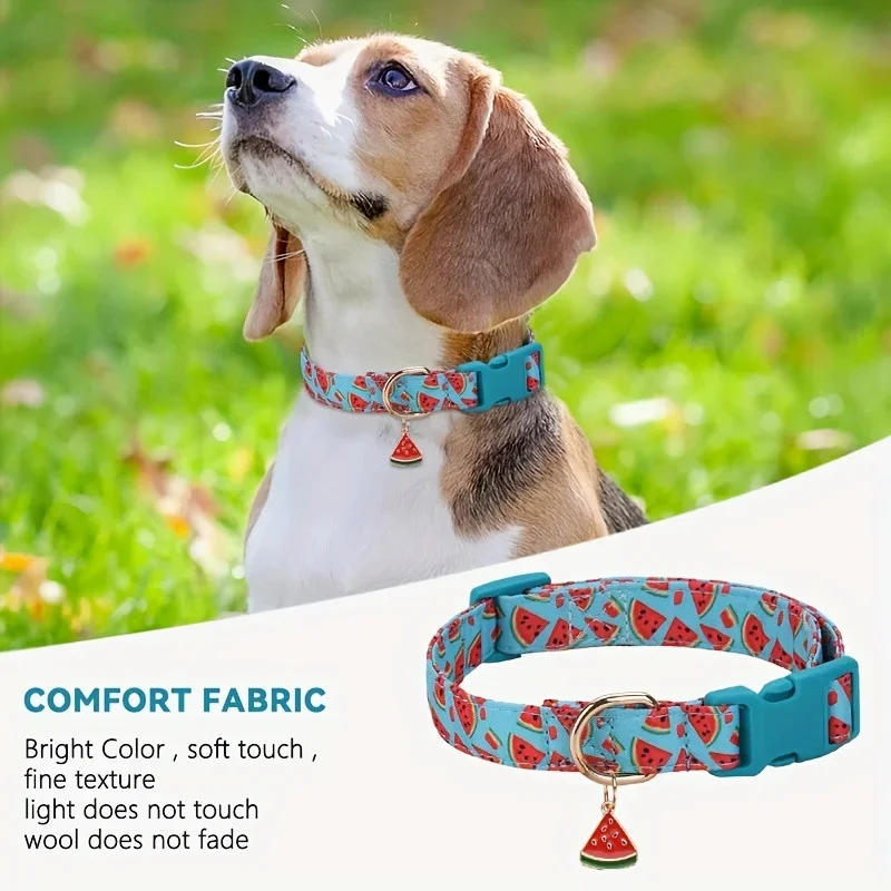 Elegante fruta - Juego de collar para perro de poliéster con estampado - Hebillas ajustables y anillos de aleación de zinc - Durable y lavable a máquina