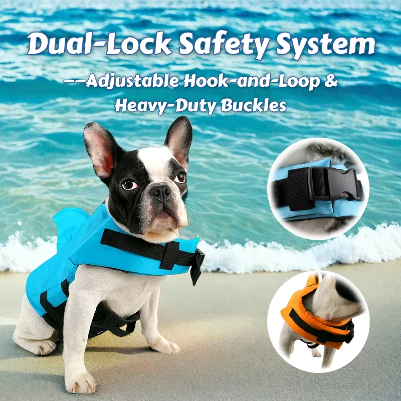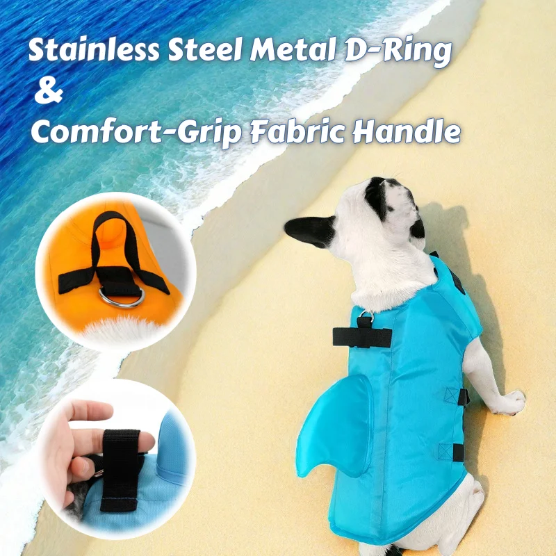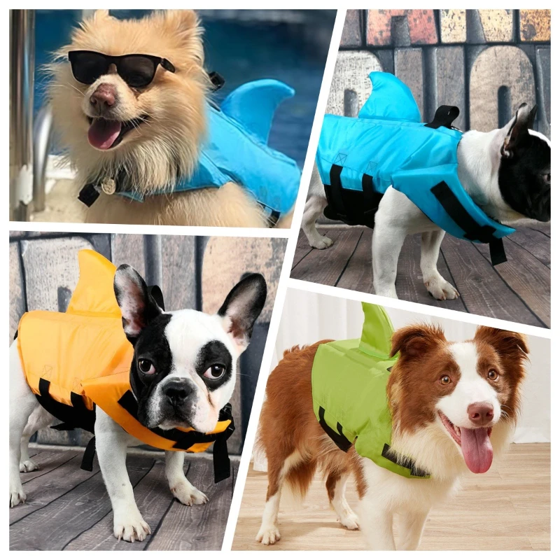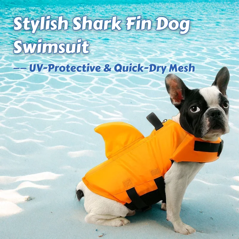 Elegante traje de baño para perros con aleta de tiburón, chaleco de flotación de seguridad para Bulldogs franceses y razas de todas las tallas, ropa de verano para perros de malla de secado rápido