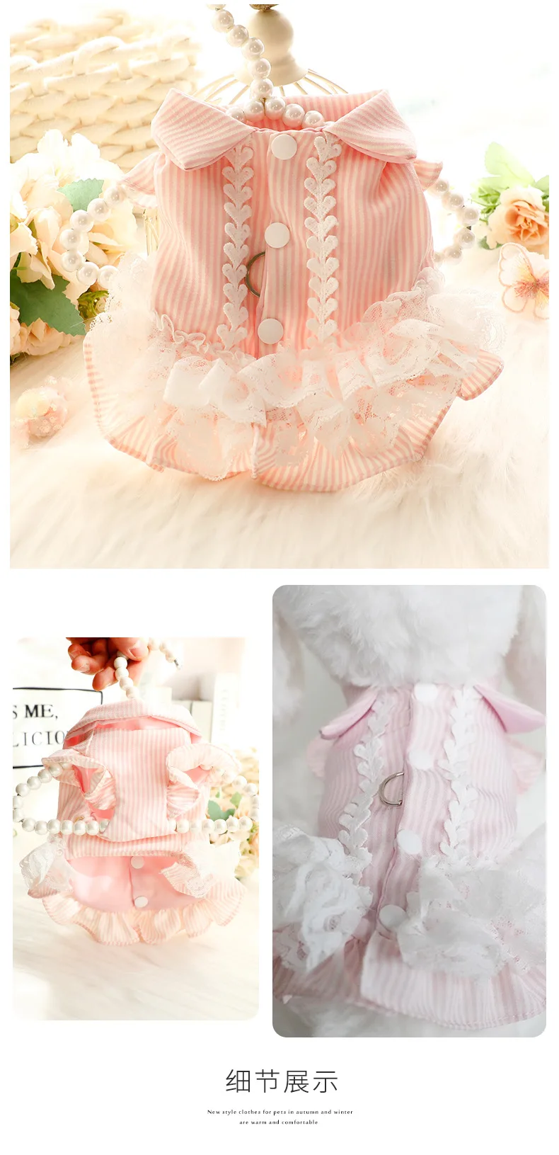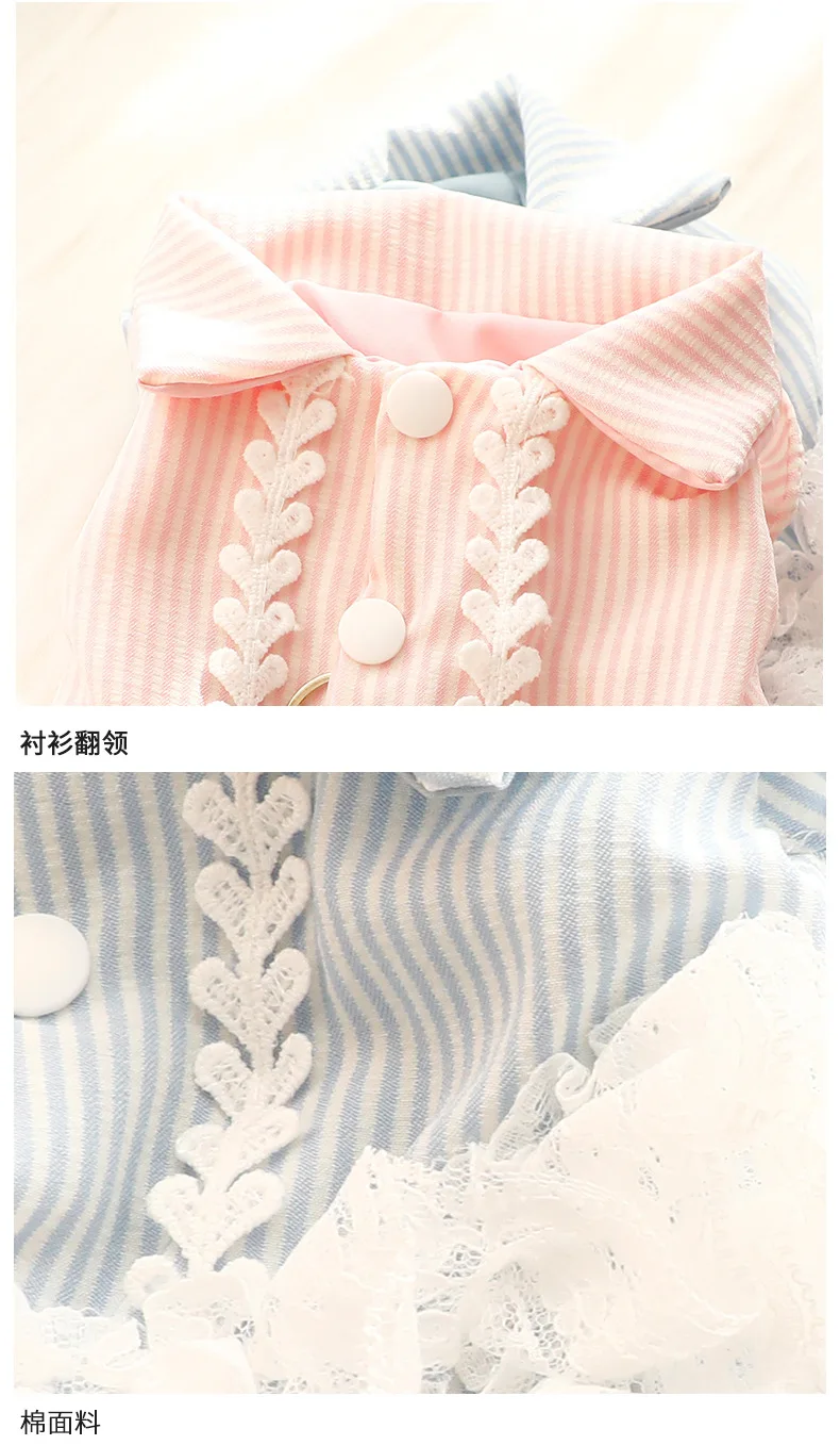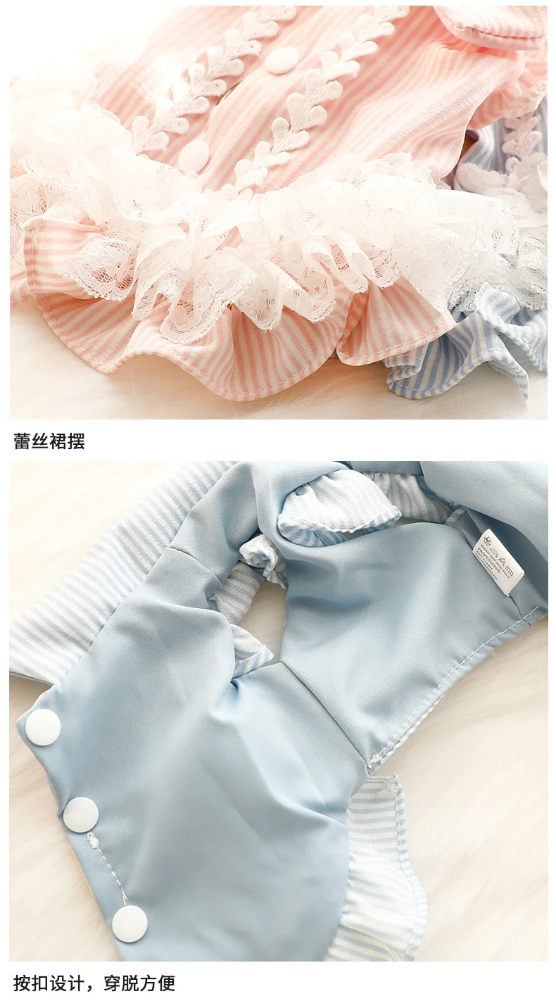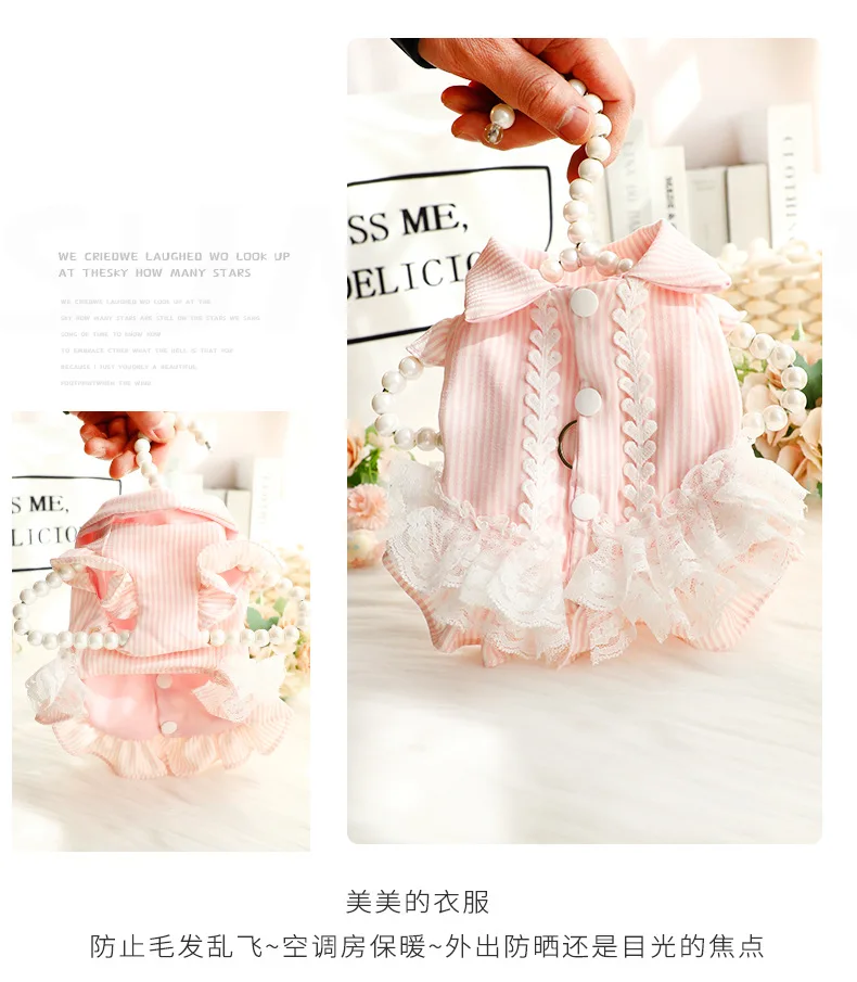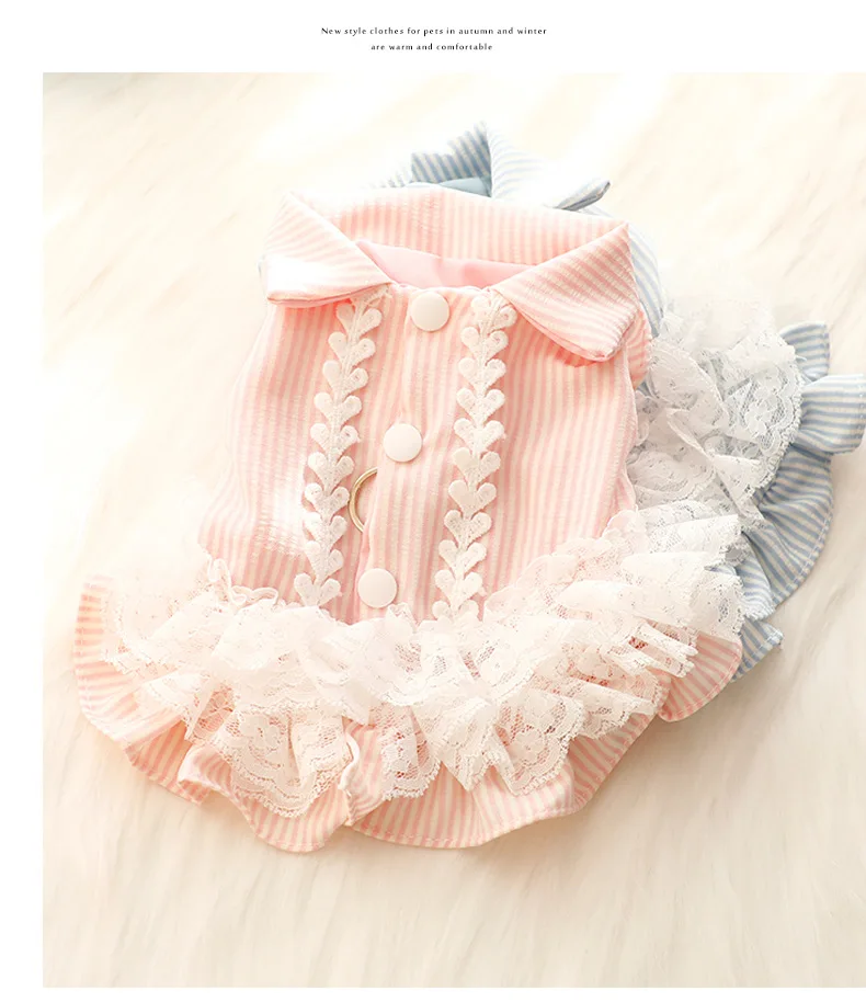 Elegante vestido de princesa a rayas transpirable de primavera y verano, camisa de gato a rayas con encaje delicado, perfecto para perros pequeños
