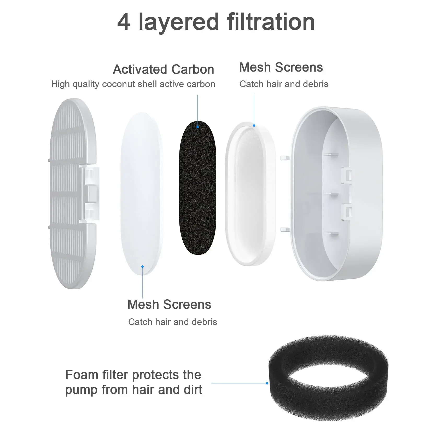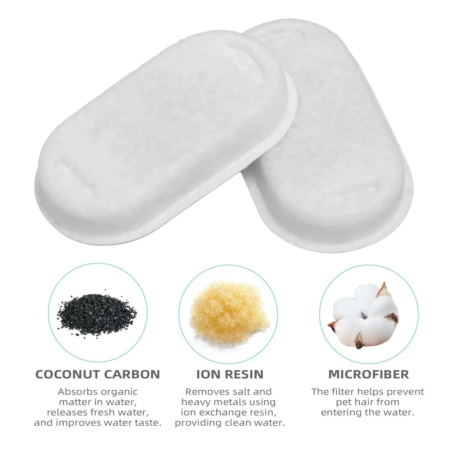 Sistema de filtración circulante de tres capas: este reemplazo de filtro de fuente de agua contiene carbón activado para gatos, que junto con la tela no tejida forma un sistema de filtración circulante de cuatro CAPAS. Filtra eficazmente el pelo de las mascotas, los residuos de alimentos, absorbe olores y suaviza el agua, proporcionando a su mascota agua potable fresca y saludable.