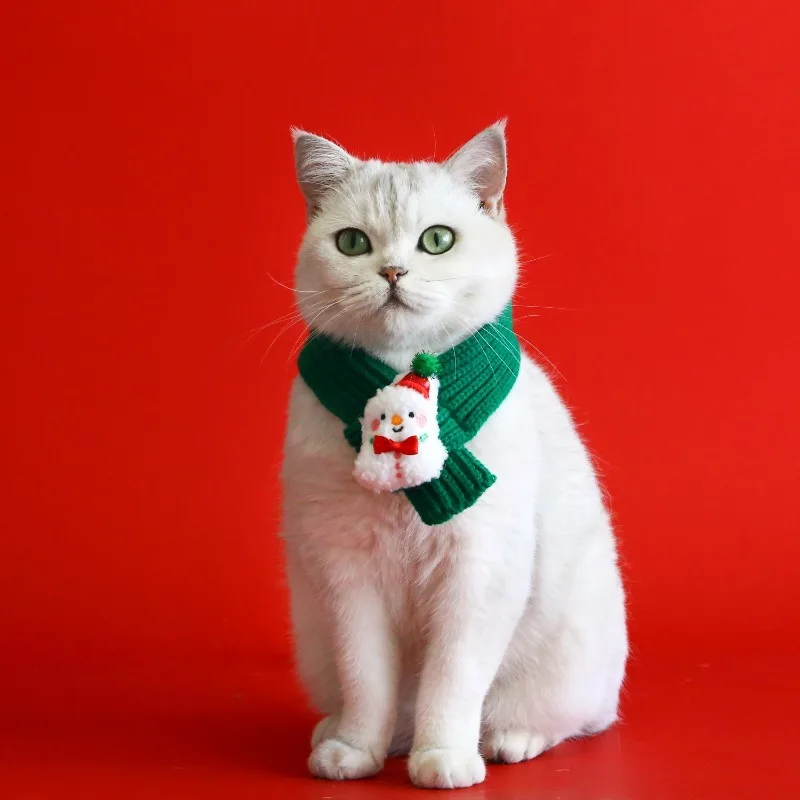 Elk Pet Dog Knitted Christmas Scarf Cat Hat Dog Yarn Cartoon Elk Snowman Warm Plush Hat Set Dog Accessories for Small Dogs