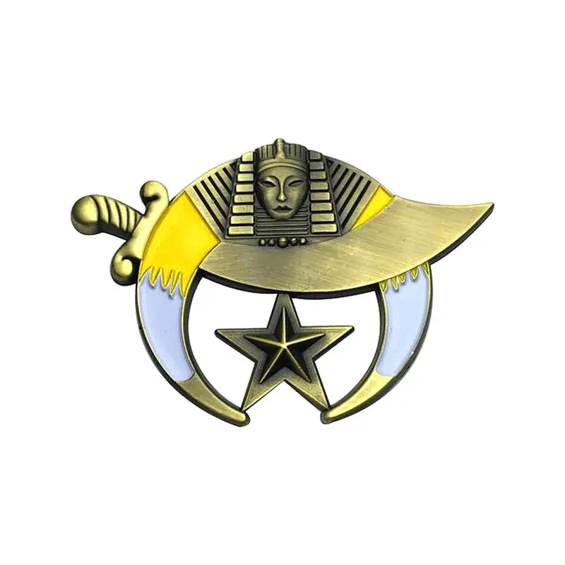 Nombre del producto: 3" Oro antiguo recortado 3D Shriner Mason Auto camión motocicleta calcomanía insignia Emblema Masonic Car