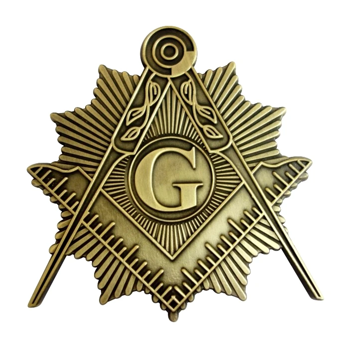 Nombre del producto: Brújula con símbolo de Mason dorado antiguo de 3", insignia cuadrada para coche y camión, calcomanía para motocicleta, emblema masónico para coche