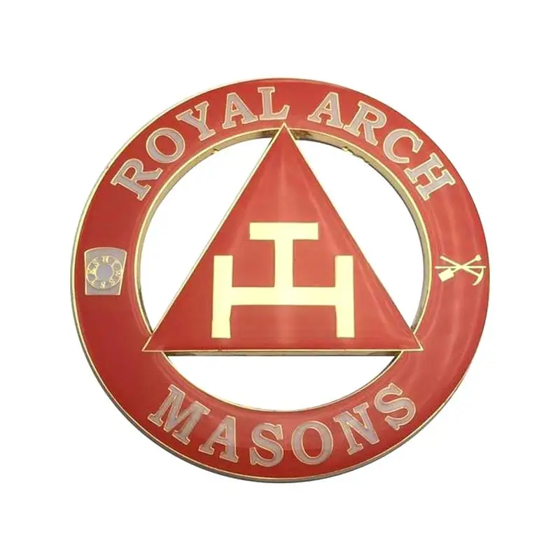 Nombre del producto: Insignia de calcomanía de motocicleta para camión, coche, arco real dorado de 3", emblema de coche masónico