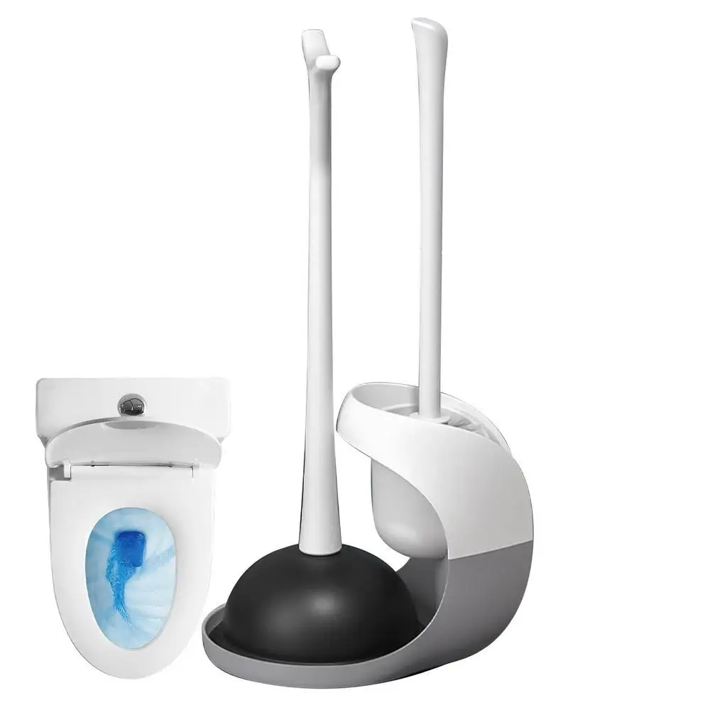 2. Limpieza eficiente: el cepillo suave para inodoro y el juego de émbolo de goma eliminan eficazmente la suciedad y las obstrucciones, manteniendo su inodoro limpio y fresco. Puede disfrutar de una limpieza sin complicaciones.