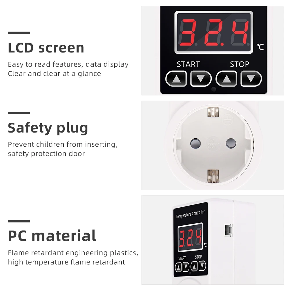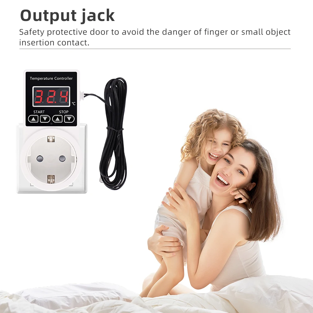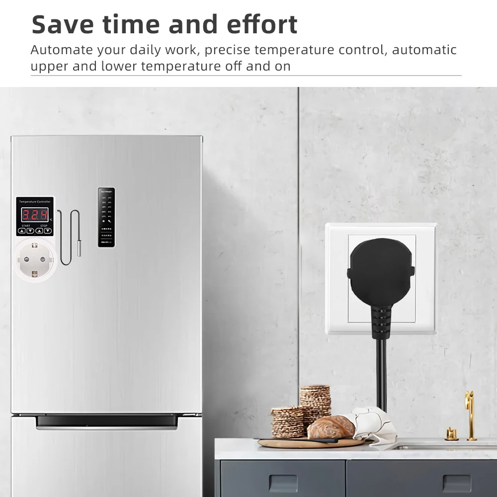 Conector inteligente para controlador de temperatura, CA, 220V, enchufe europeo, termostato Digital, enchufe-20 ~ 120℃ Interruptor de refrigeración de calefacción con sensor