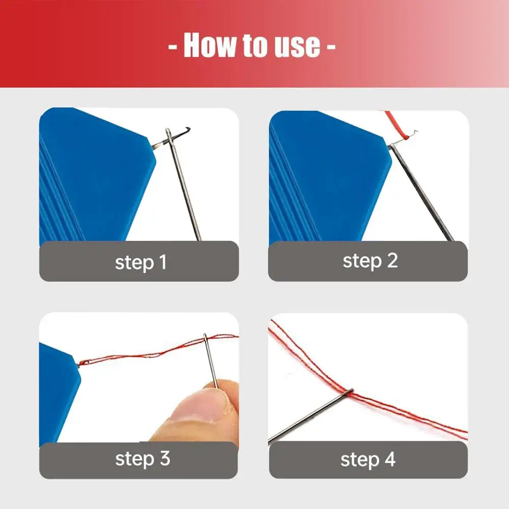 3. Instrucciones simples: Enhebra fácilmente las agujas colocando el gancho a través del ojo y luego tirando de él con el hilo. No más dificultades para meter el hilo a través de esos pequeños agujeros: ¡Nuestro enhebrador lo hace por usted!