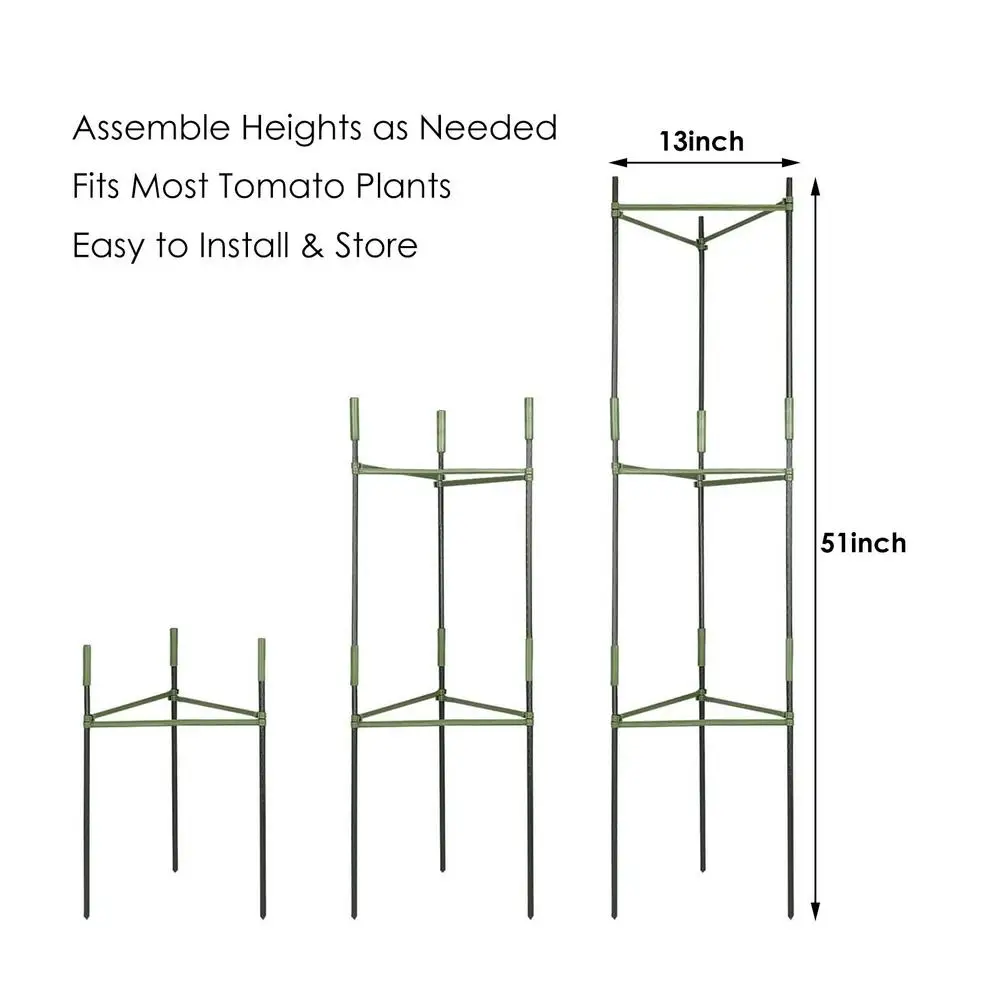Fácil de montar: aproximadamente 51,2 pulgadas de alto. El soporte de la jaula se puede instalar inmediatamente sin herramientas. Es muy simple, ahorra tiempo y sin esfuerzo instalar la columna usando la hebilla.Fomenta el crecimiento vertical: las estacas de jaula soportan los tomates u otras plantas y los animan a crecer verticalmente. Por lo tanto, la fruta y las hojas no son pesadas en el tallo.