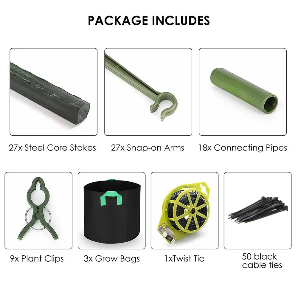 Lista de embalaje:3 * bolsa de plantación9 * Clip3 * Juego de estantes de soporte para plantas1 * rollo retorcido50 * Cable Tie
