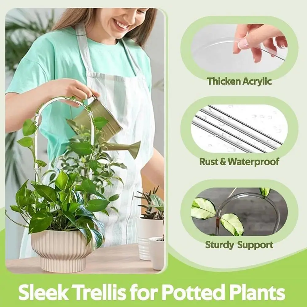 Una solución práctica para guiar el crecimiento de las plantas, el enrejado redondo transparente está equipado con lazos giratorios para mayor comodidad.Proporciona un soporte resistente para tallos para flores, pothos, hiedra y enredaderas, lo que lo hace ideal para mejorar la decoración del hogar, jardines, patios y espacios al aire libre donde haya plantas o verduras en macetas.