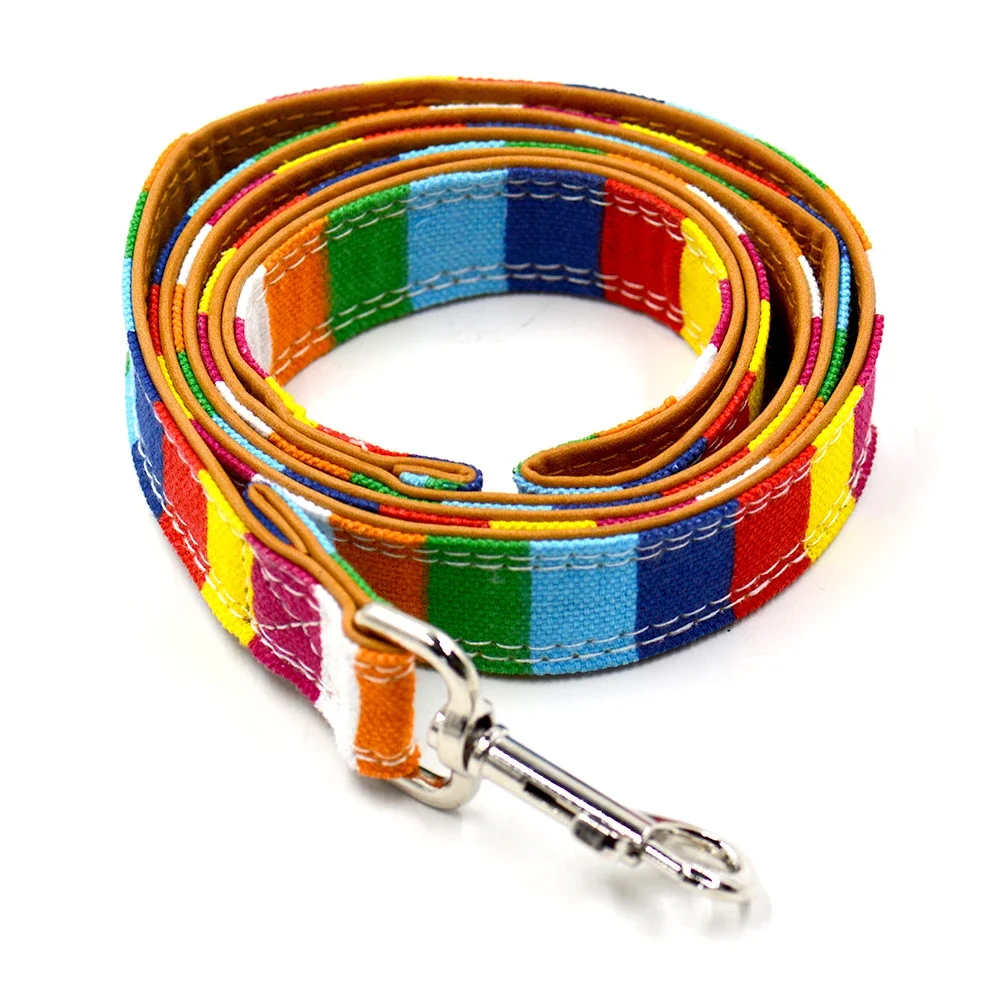 Envío Gratis nueva correa para gatos de mascota arcoíris lona colorida + correa para perros de cuero PU S L plomo para perros pequeño plomo para mascotas de tamaño mediano
