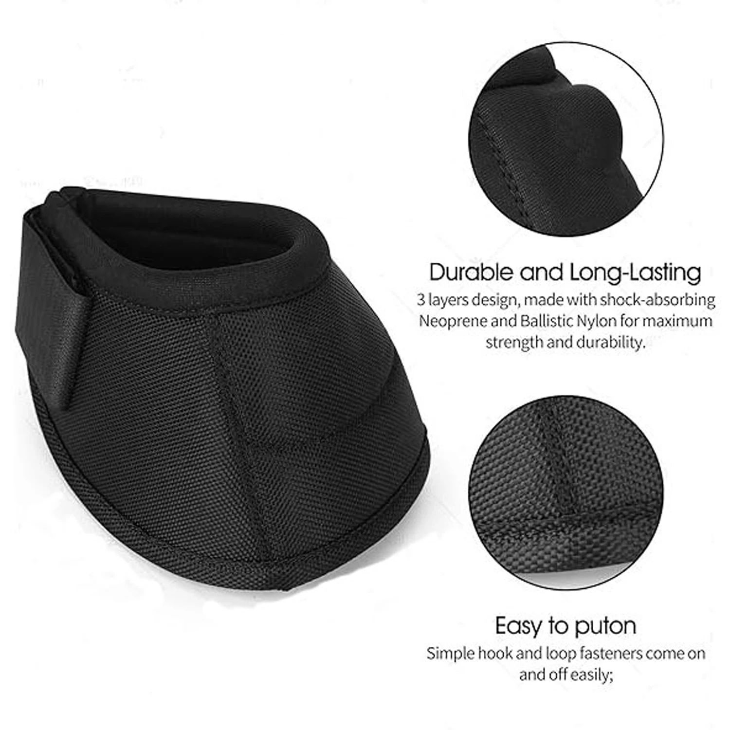 4. 비틀림 방지 보호: 이 말 벨 부츠는 부츠가 비틀리거나 미끄러지는 것을 방지하기 위해 특별히 설계되어 발굽에 찰과상과 붓기를 유발할 수 있습니다.또한 훈련이나 라이딩 중에 상처나 부상으로부터 뛰어난 보호 기능을 제공합니다.