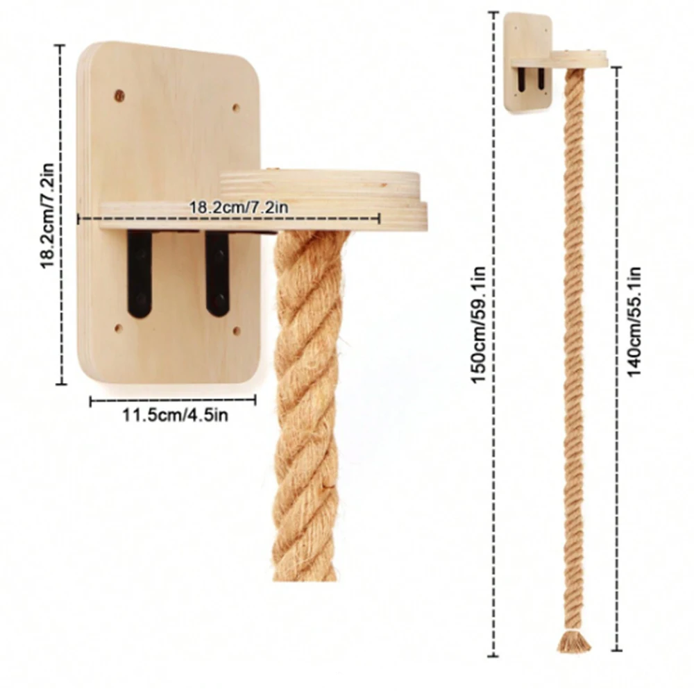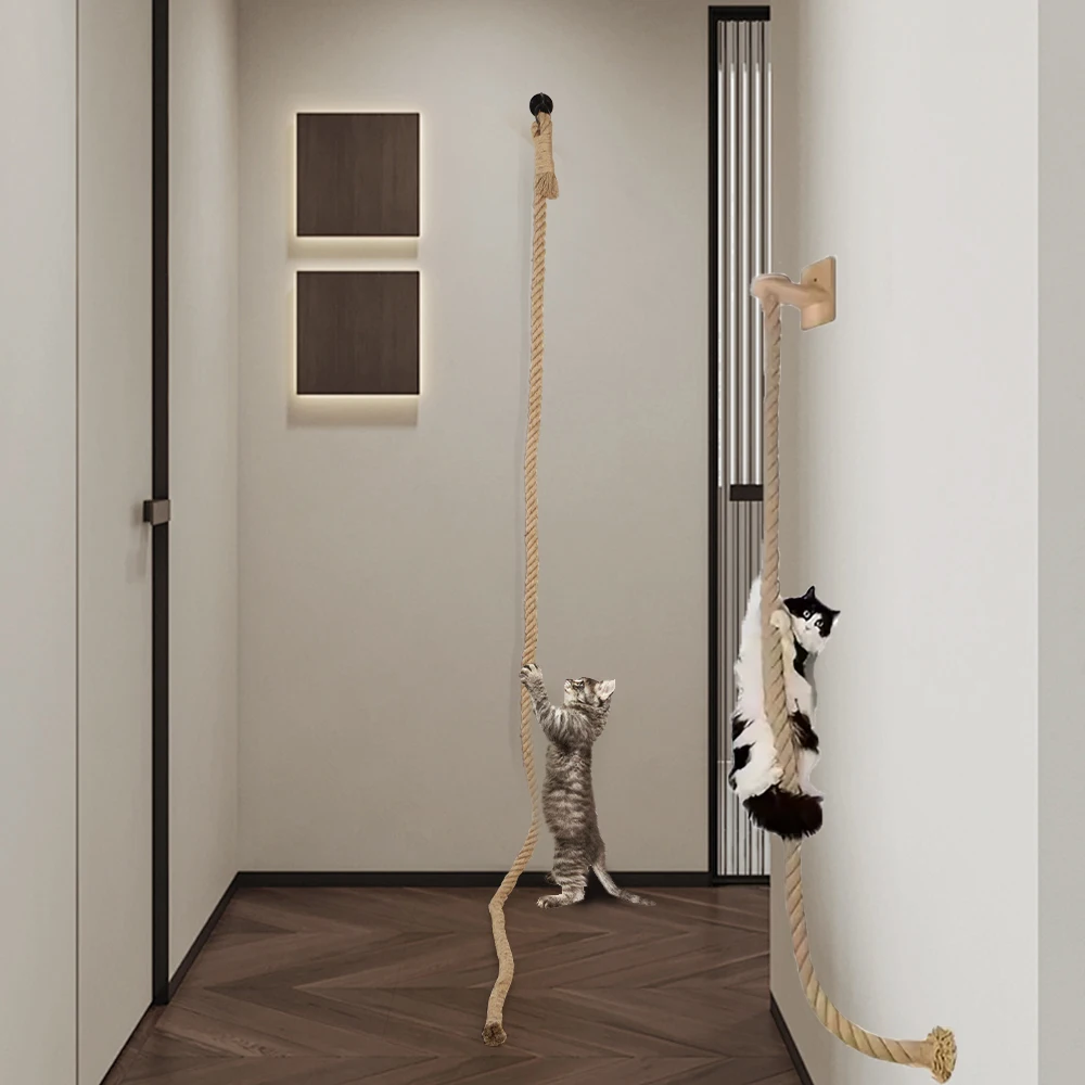 Escalada de gatos de techo montada en la pared con pedal de madera maciza de cuerda de Sisal o muebles de gato estilo gancho para entrenamiento y molienda de garras