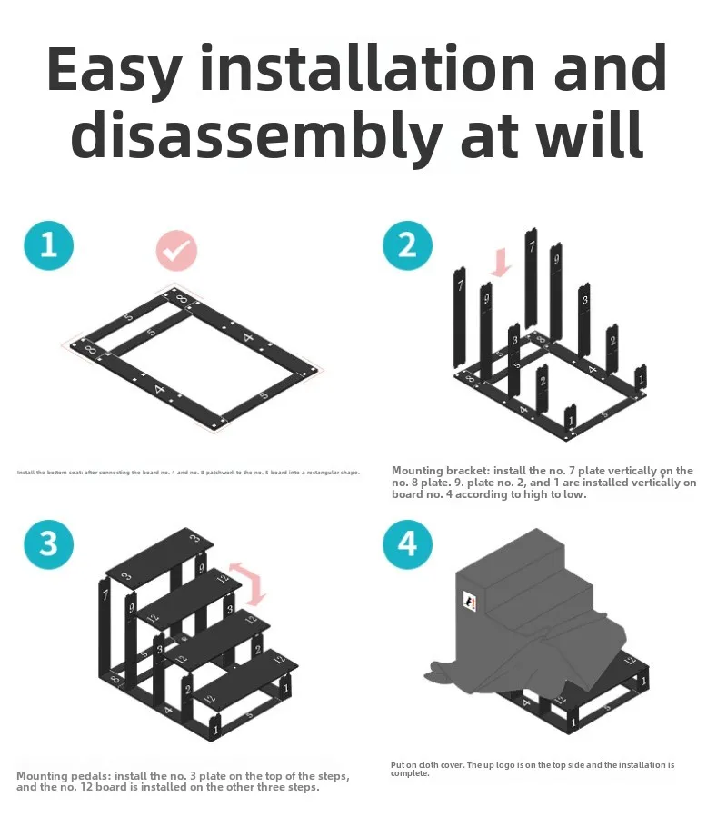 Escalera para mascotas de cuatro capas que se pueden montar y desmontar, escalera para perros y gatos, cama para el hogar, suministros antideslizantes para mascotas de varios pasos