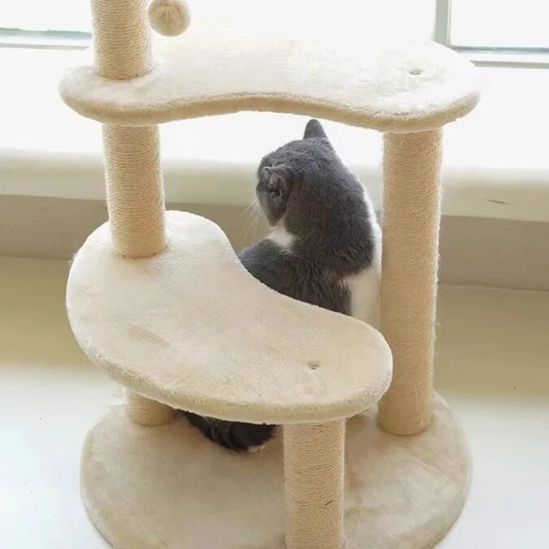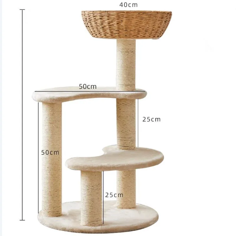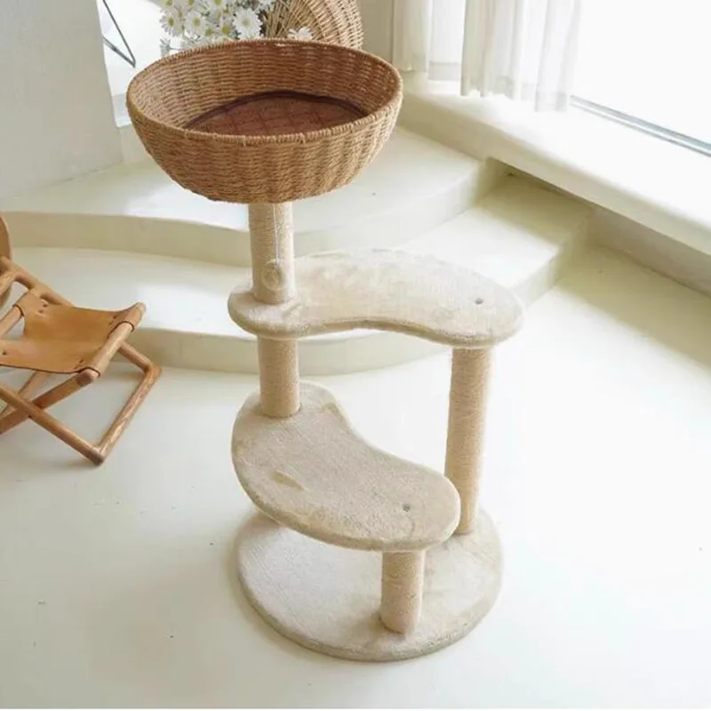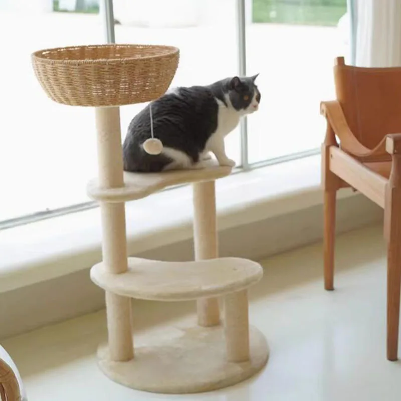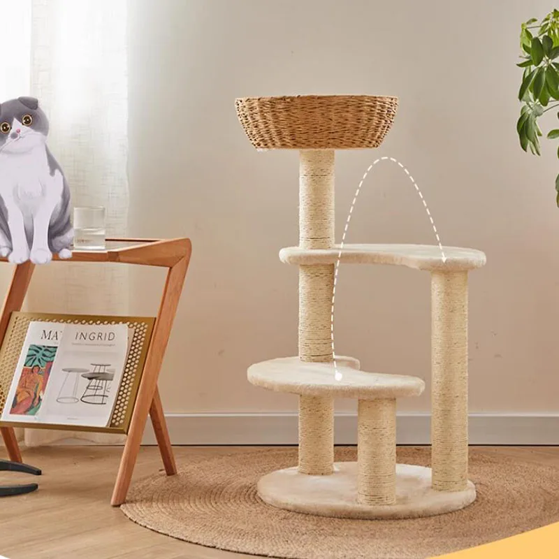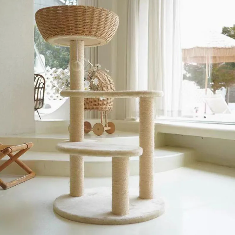 Escalera de doble capa para gatos, marco de escalada de ratán, cama de árbol para gatos, integrado, vertical, grande, de cáñamo, madera maciza