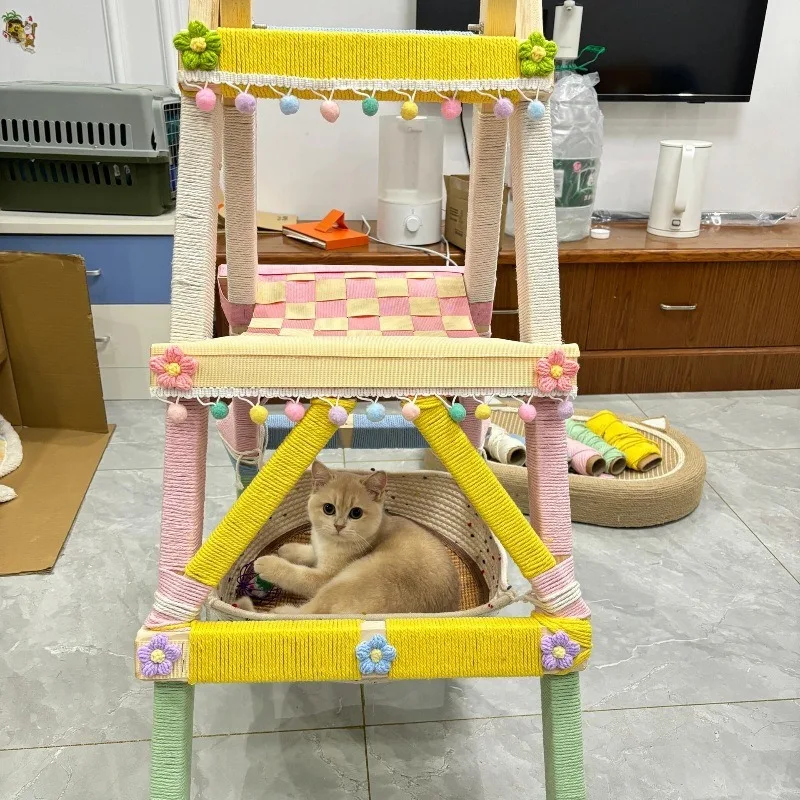 Escalera de escalada para gatos Diy, tablero para rascar gatos, hilo colorido casero, nido para gatos, Material decorativo, accesorios, productos de juguetes para mascotas