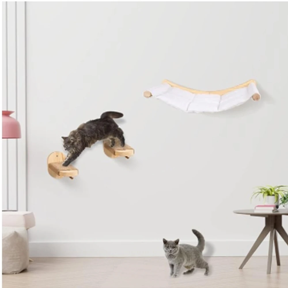 2. La hamaca montada en la pared satisface las necesidades de escalada de gatos y ahorra espacio.