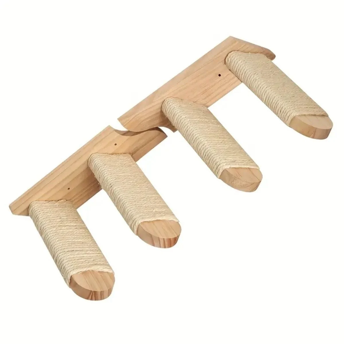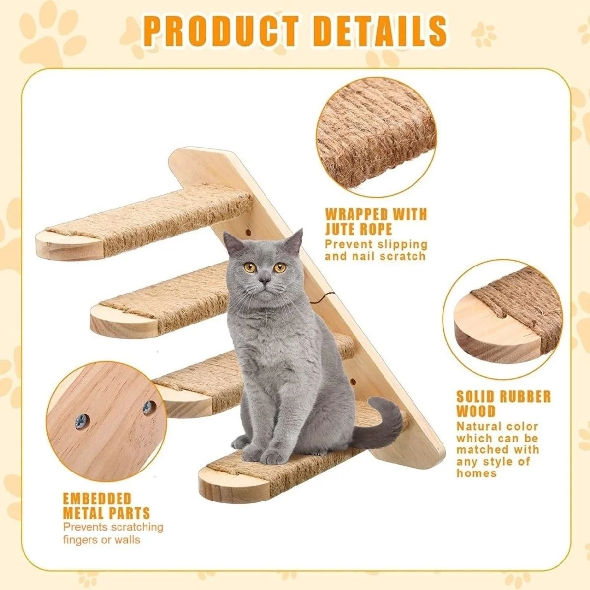 Escalera para gatos de madera maciza de cuatro niveles con escalera de escalada montada en la pared y percha, juguete montado en la pared que ahorra espacio en el suelo
